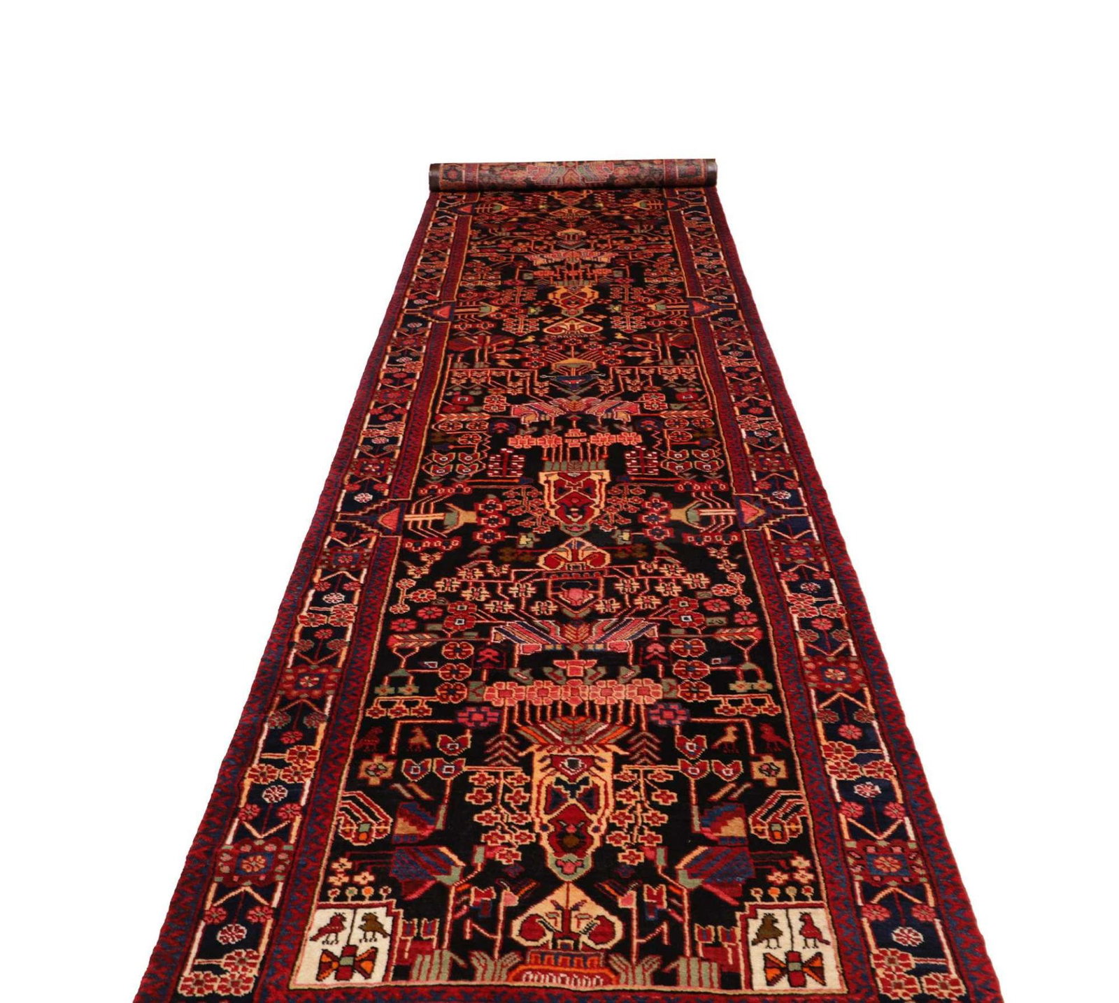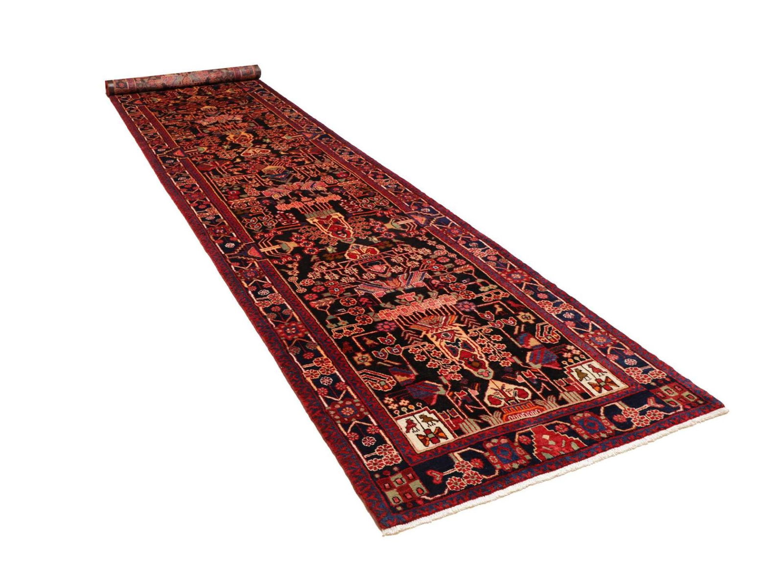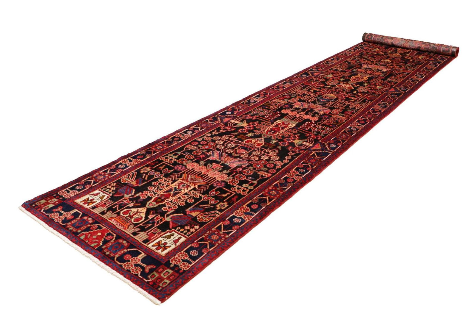 Hamadan Teppich 113 x 492 cm, Herati-Muster, handgeknüpft, Perserteppich