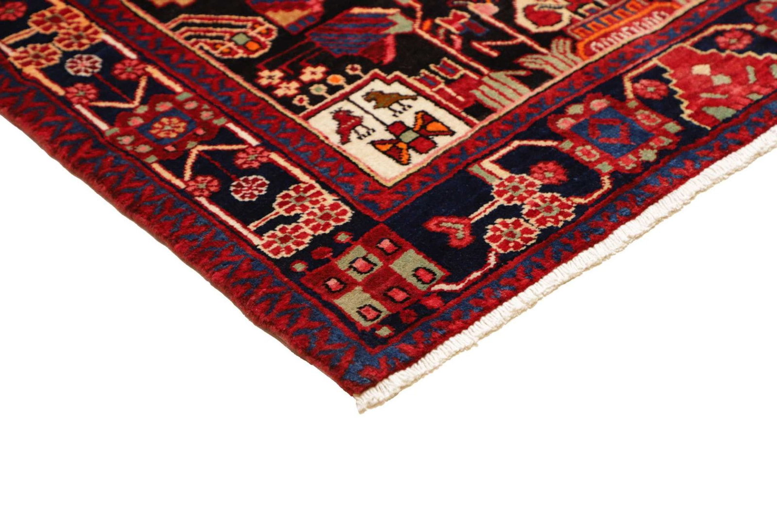 Die Farbpalette des Hamadan Teppichs ist traditionell und enthält meist tiefrote, Blau- und Erdtöne, die nicht nur zeitlos sind, sondern auch eine warme und einladende Ausstrahlung bieten. Die Kombination dieser Farben zusammen mit dem charakteristischen Muster macht diesen Teppich zu einem echten Blickfang.