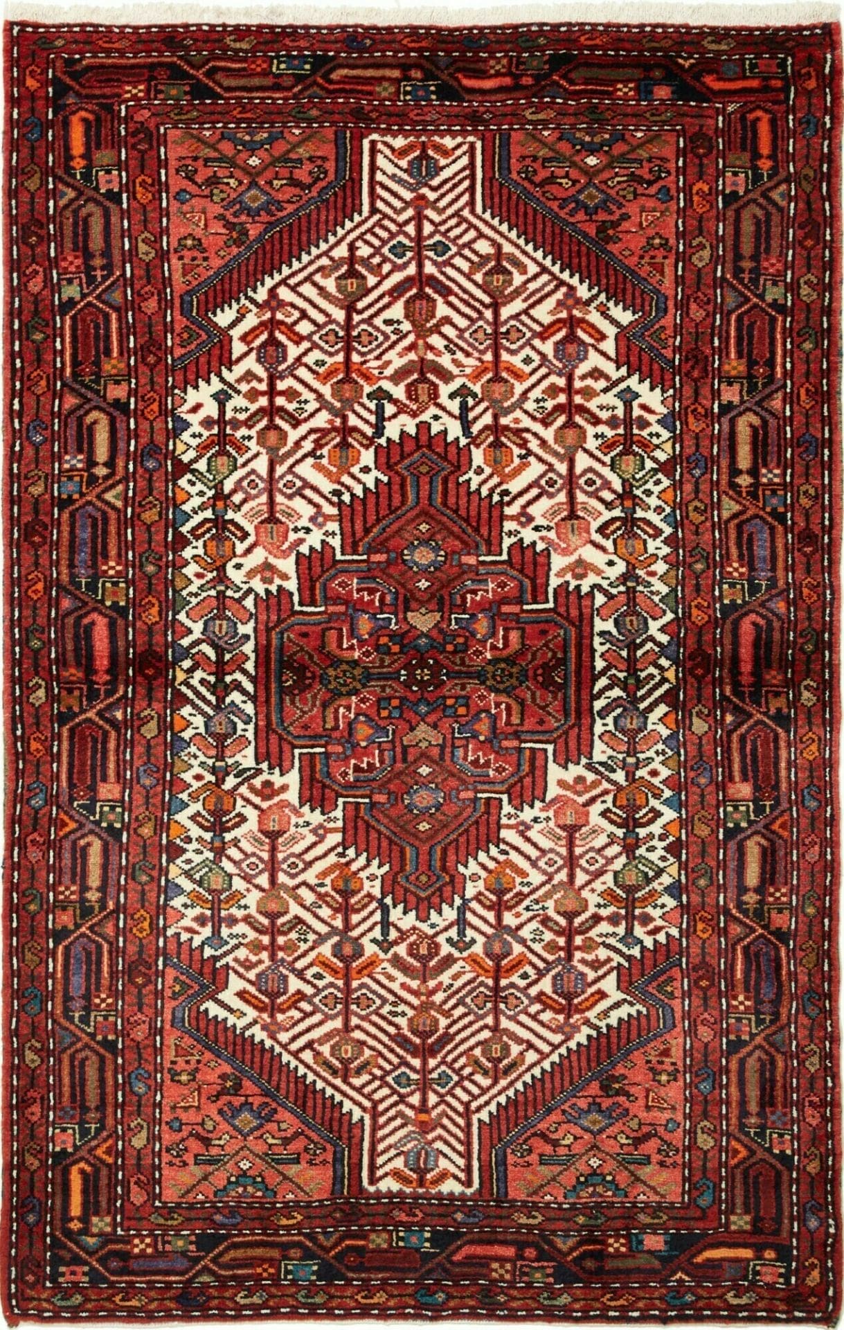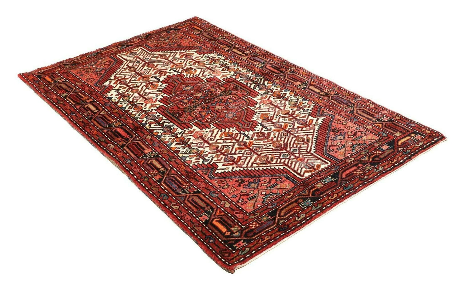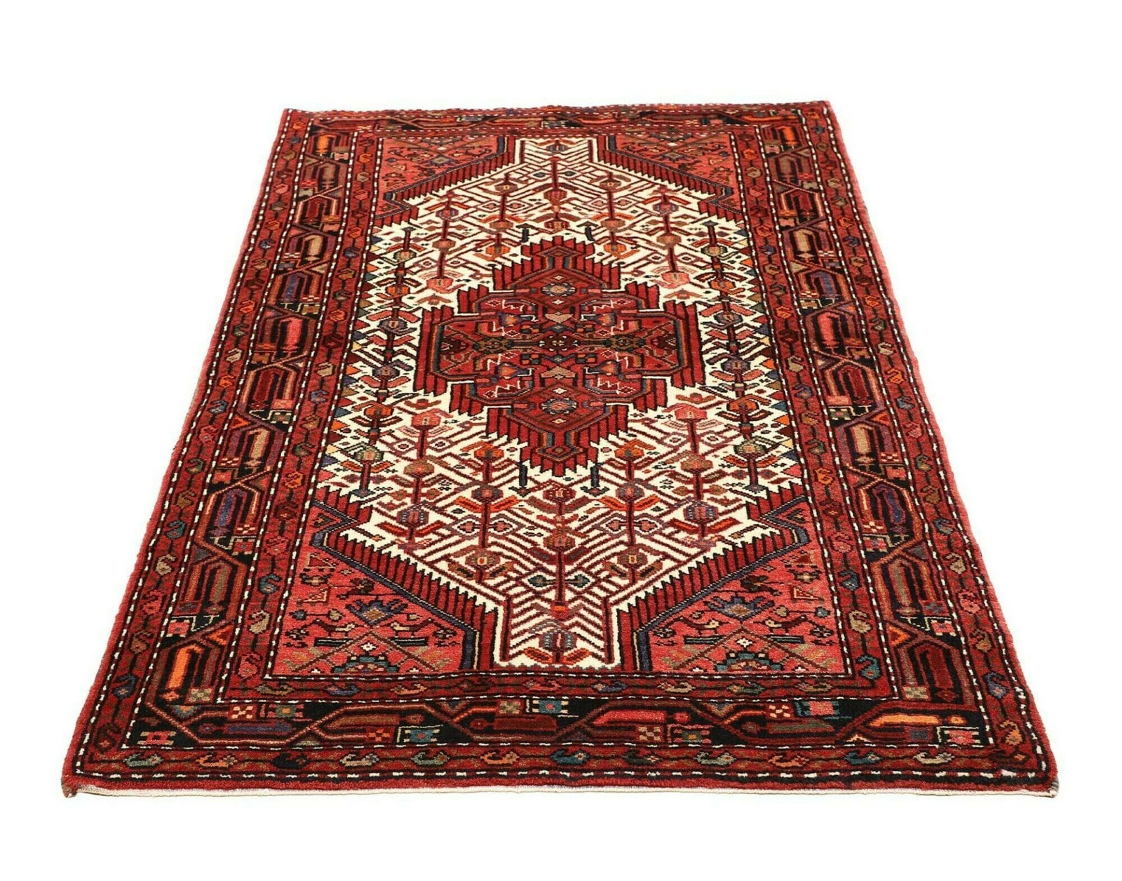 Hamadan Teppich | Knotendichte: ca. 200.000 Knoten/m² | Material: 100% Schurwolle (Flor), 100% Baumwolle (Kette) | Größe: 114 x 175 cm | Zustand: Handgeknüpft, hochwertige Verarbeitung | Ursprungsregion: Iran | Muster: Herati- und geometrische Muster