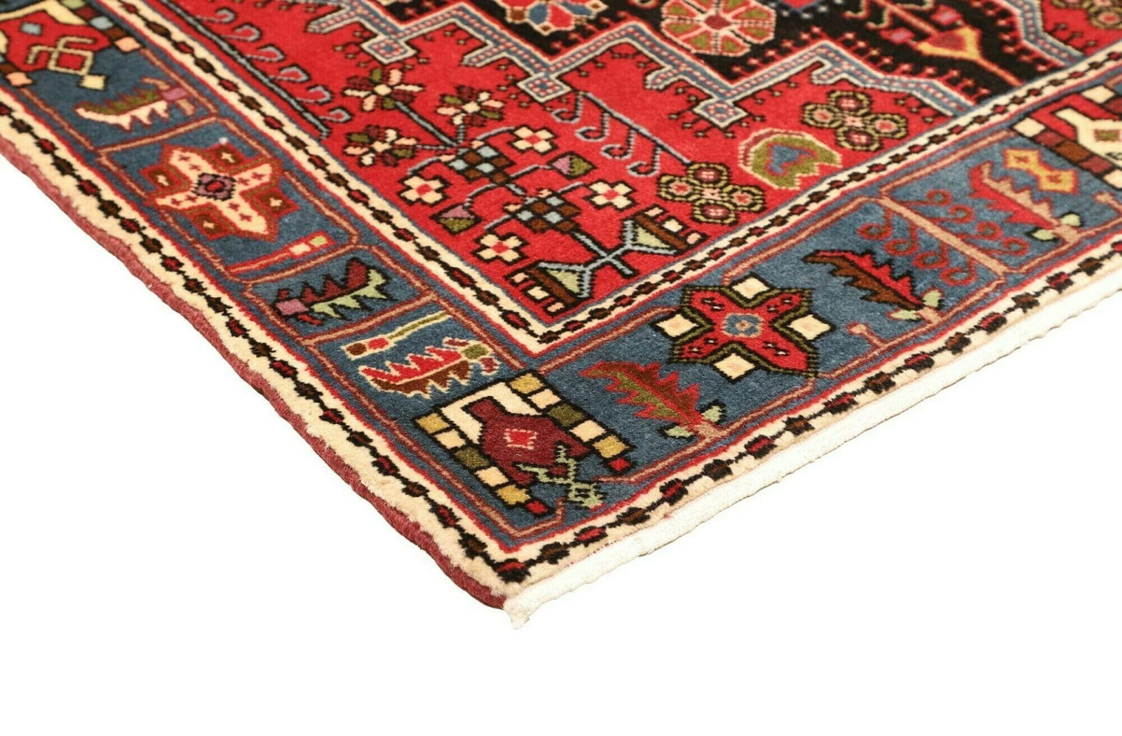 Das auffällige Herati-Muster, das diesen Teppich ziert, ist eines der prägendsten Designs in der orientalischen Teppichkunst. Es zeigt eine stilisierte Fischform, die mit floralen Elementen kombiniert wird und häufig Symbole des Wohlstands und der Fruchtbarkeit darstellt. Das Muster ist nicht nur ästhetisch ansprechend, sondern erzählt auch Geschichten und Traditionen der Region. Die harmonische Farbpalette, die oft wiederkehrende Rottöne, Blau- und Grüntöne umfasst, sorgt dafür, dass der Teppich in verschiedene Einrichtungsstile integriert werden kann und gleichzeitig einen Blickfang im Raum darstellt.