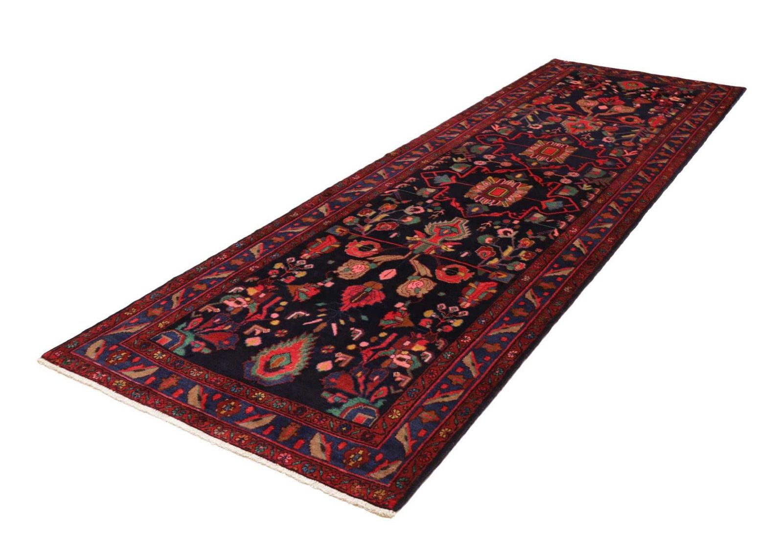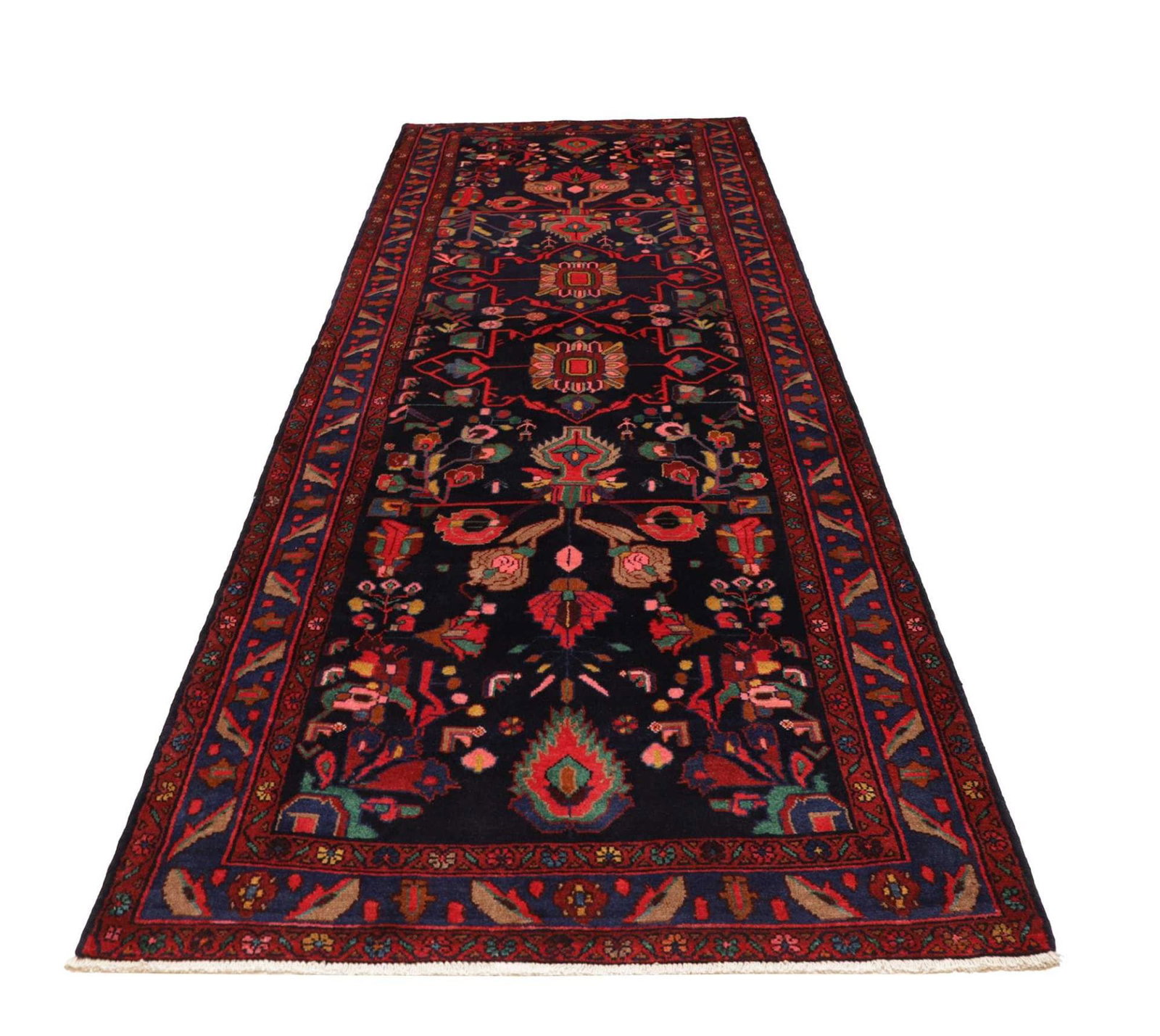 Handgeknüpfter Hamadan Teppich | Knotendichte: ca. 200.000 Knoten/m² | Material: 100% Schurwolle (Flor) und 100% Baumwolle (Kette) | Größe: 120 x 360 cm | Herkunft: Iran | Muster: Herati und geometrische Muster | Zustand: Sehr gut, handgefertigte Qualität