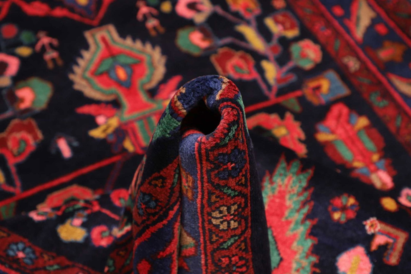 Ein charakteristisches Merkmal von Perserteppichen sind die detaillierten Musterungen, die sowohl florale als auch geometrische Elemente enthalten. Besonders in der Region Hamadan, bekannt für seine Vielfalt an Designs, sind die Teppiche oft mit dem klassischen Herati-Muster verziert, das durch wiederkehrende geometrische Formen besticht. Die Teppiche variieren in Farben, wobei Blau- und Rottöne häufig dominieren, und oft finden sich Kompositionen, die die Kultur und Tradition des jeweiligen Herstellungsorts widerspiegeln.