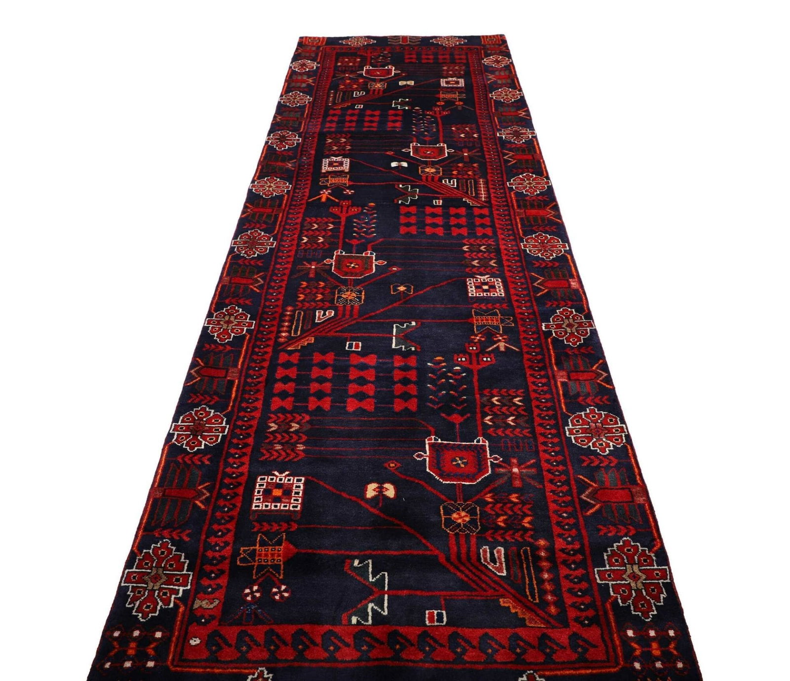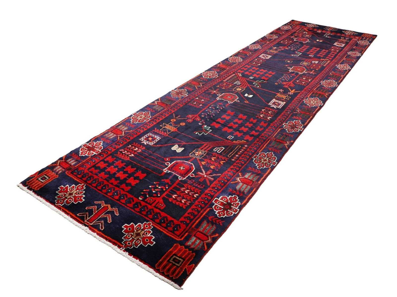 Hamadan Teppich 120 x 400cm, Herati-Muster, Schurwolle, handgeknüpft