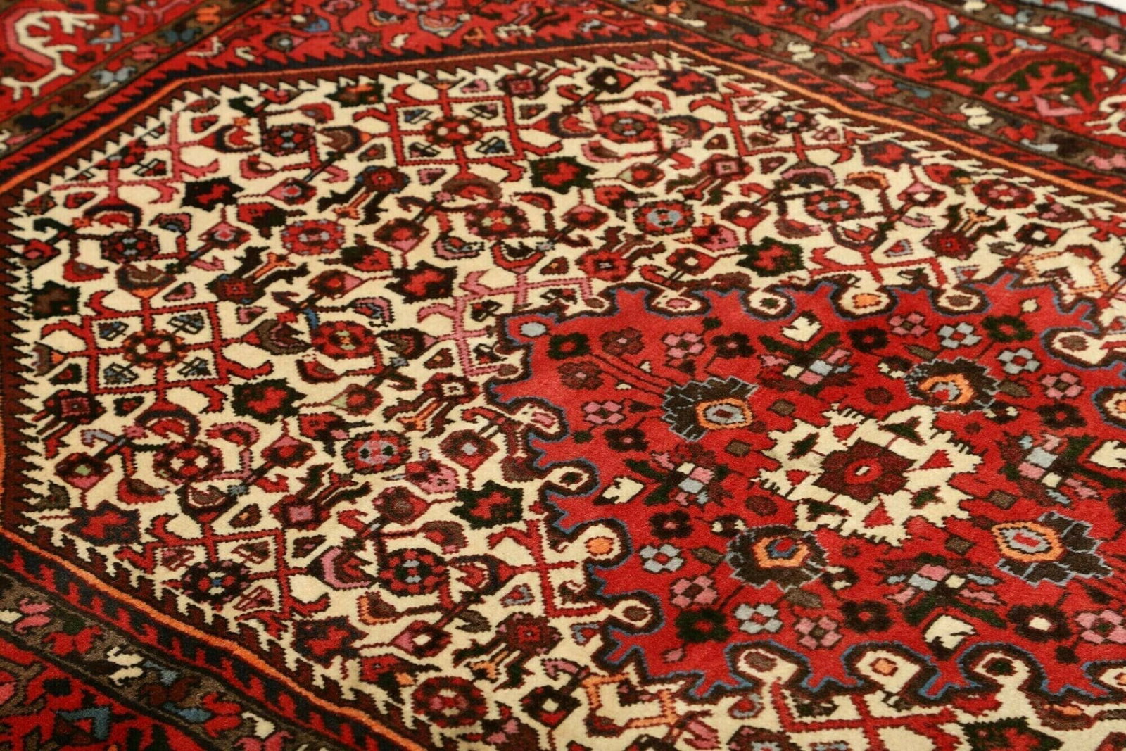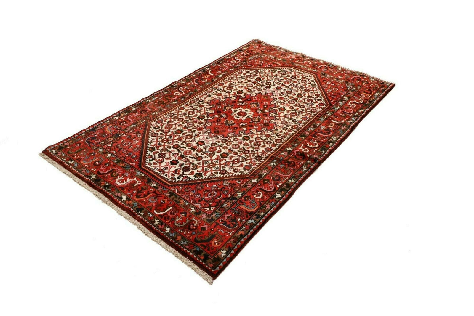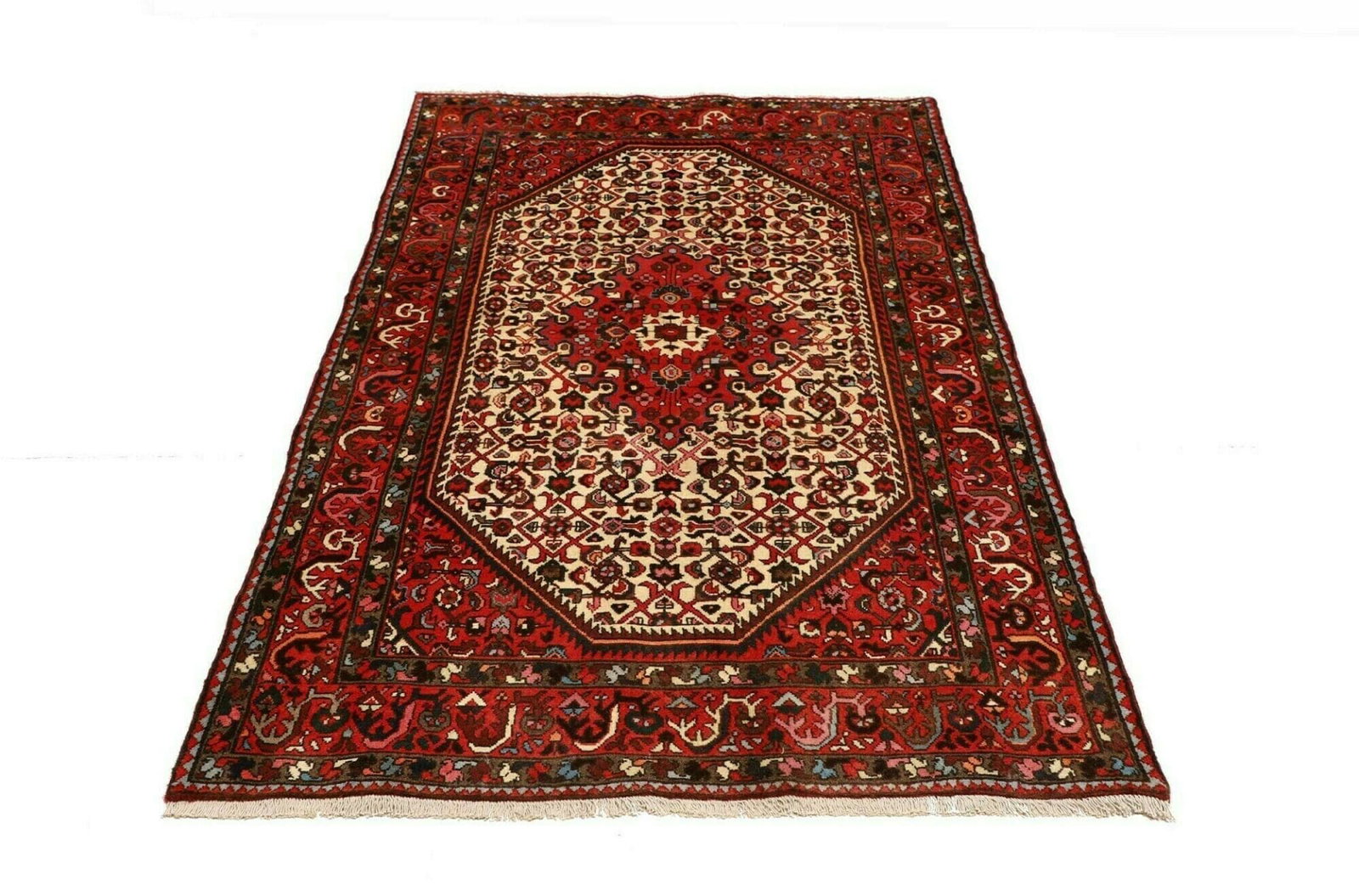 Hamadan Teppich | Knotendichte: ca. 200.000 Knoten/m² | Material: 100% Schurwolle und 100% Baumwolle | Größe: 123 x 190 cm | Muster: Herati und geometrische Muster | Herkunft: Iran | Zustand: Handgeknüpft, hohe Qualität | Höhe: ca. 10-12 mm