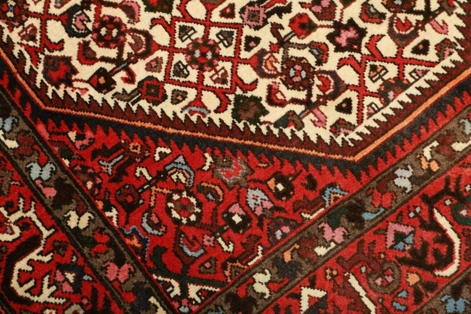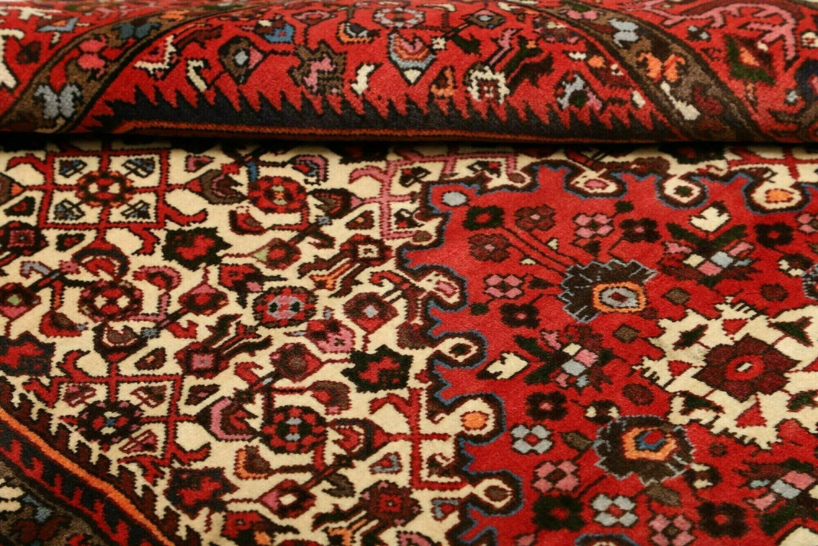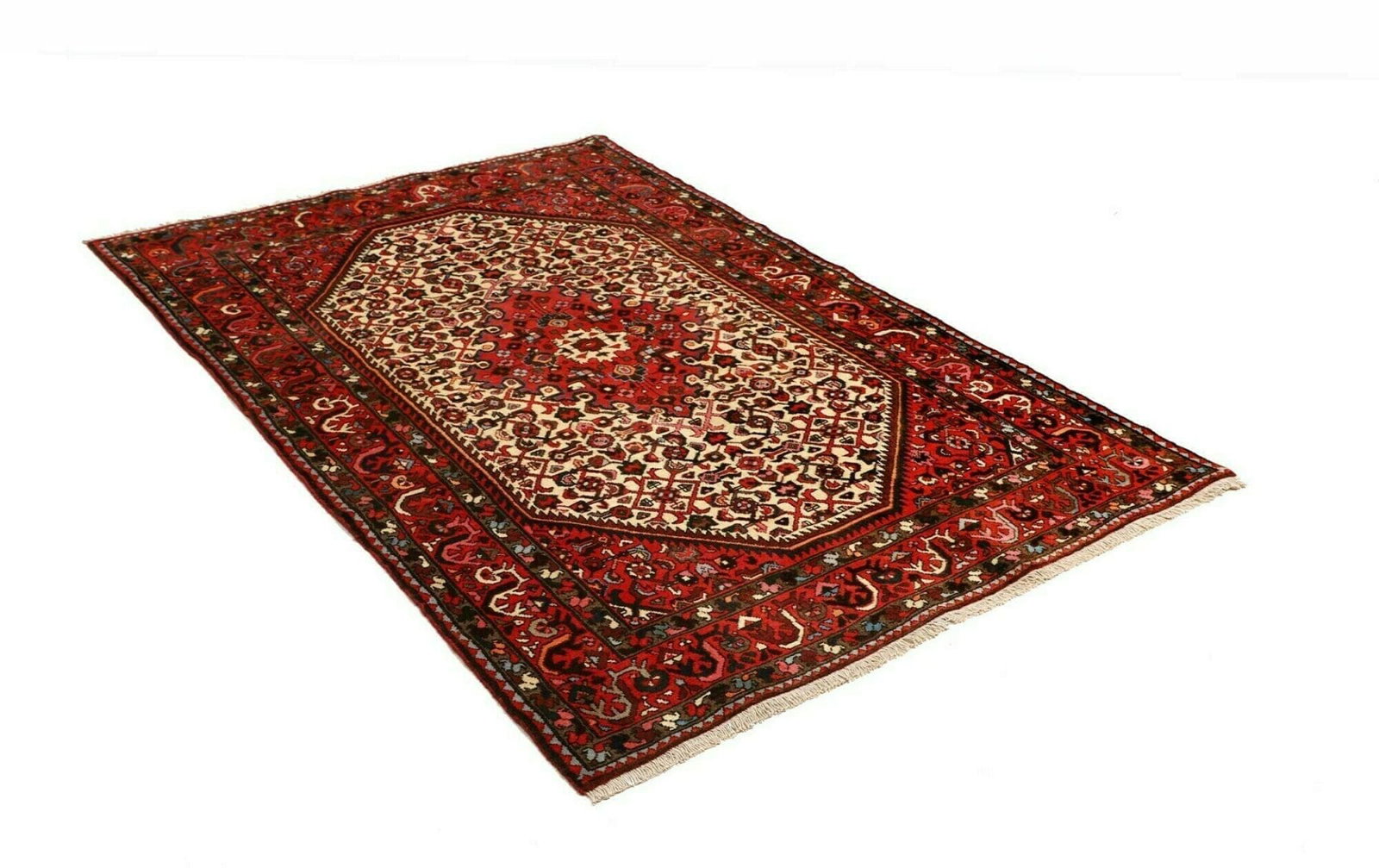 Hamadan Teppich | Knotendichte: ca. 200.000 Knoten/m² | Material: 100% Schurwolle und 100% Baumwolle | Größe: 123 x 190 cm | Muster: Herati und geometrische Muster | Herkunft: Iran | Zustand: Handgeknüpft, hohe Qualität | Höhe: ca. 10-12 mm