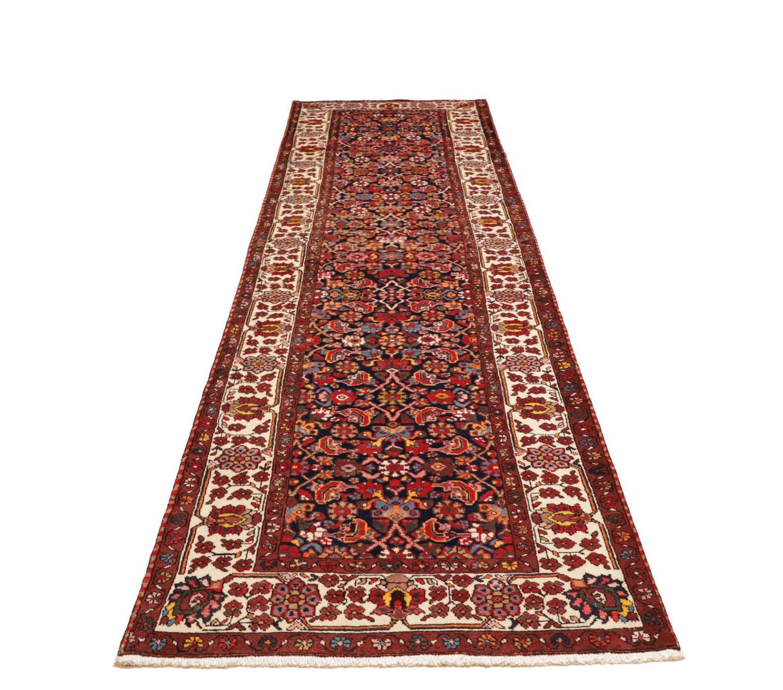 Hamadan Teppich 123 x 380 cm, Herati-Muster, handgeknüpft