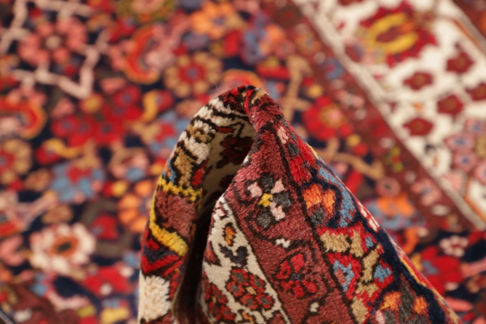Dieser handgeknüpfte Hamadan Teppich überzeugt durch seine außergewöhnliche Qualität und die komplexe Handarbeit, die in seiner Herstellung steckt. Ein weiterer Vorteil ist die Pflegeleichtigkeit eines Wolle-Teppichs, der resistent gegen Flecken ist und sich dennoch gut reinigen lässt. Die hervorragende Isolierungseigenschaft von Wolle sorgt dafür, dass der Teppich auch auf Fußböden mit Fußbodenheizung verwendet werden kann. Zudem wird der Teppich in verschiedenen Evakuierungszentren für Teppich-Rettung angeboten, was seine Wertschätzung in der Welt der Kunst handwerklich hergestellter Produkte unterstreicht.