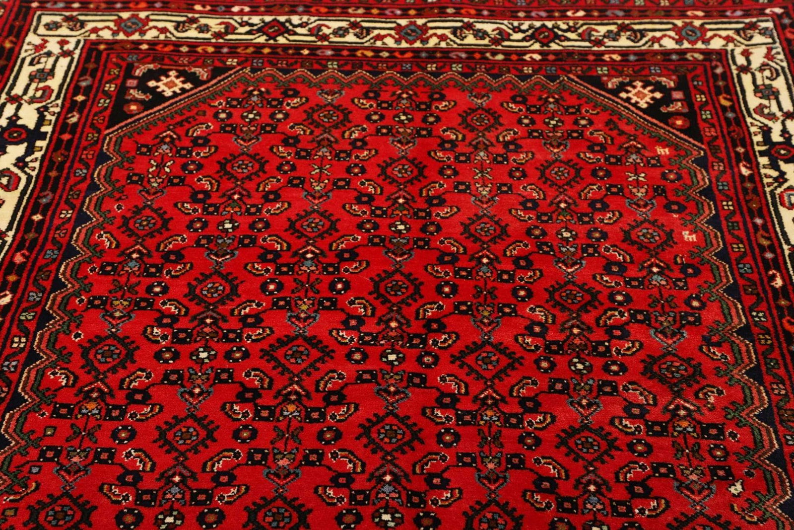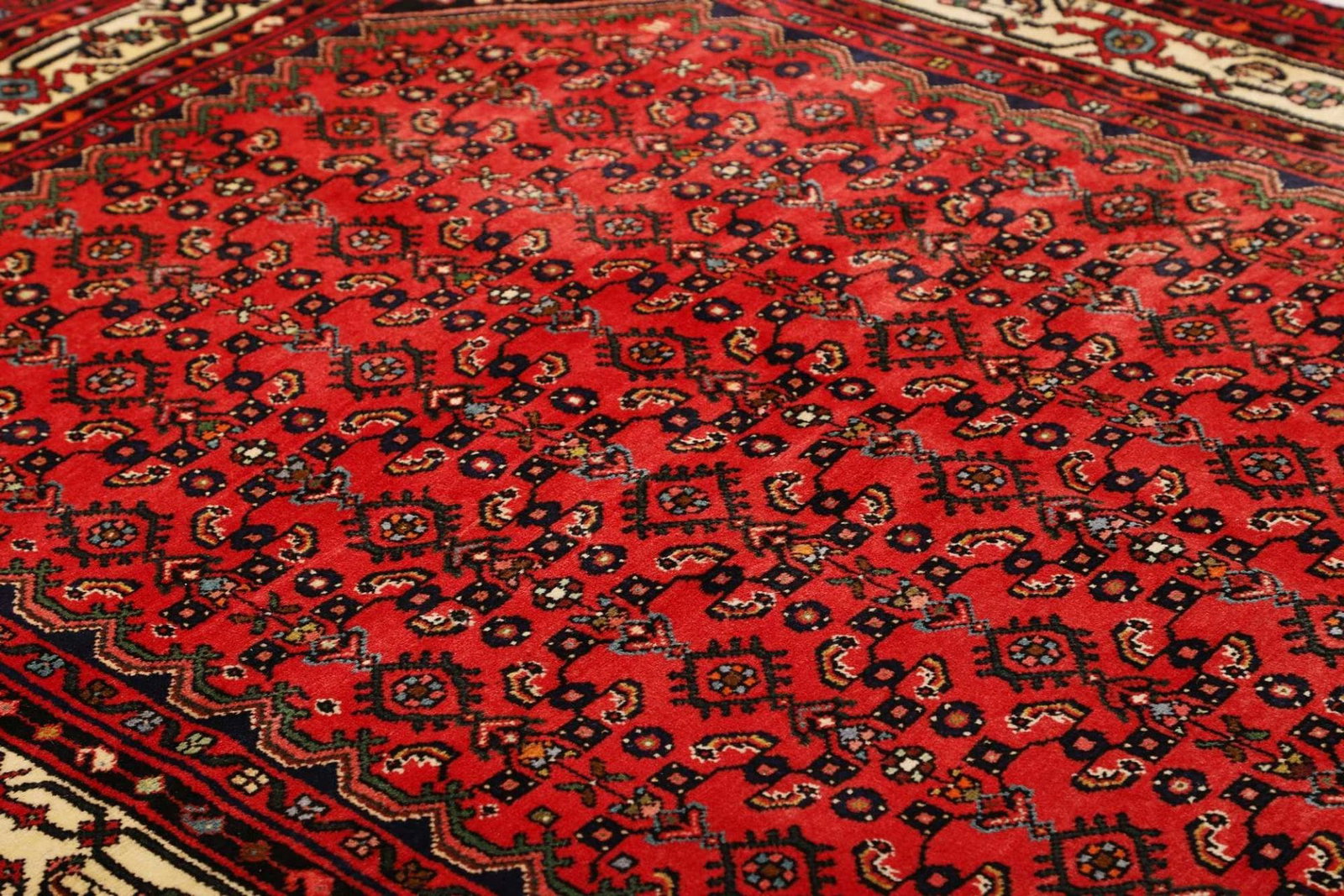 Die Tradition des Teppichknüpfens in Hamadan geht auf Jahrhunderte zurück, und die Techniken wurden über Generationen hinweg weitergegeben. Daher finden sich in den Hamadan Teppichen zahlreiche klassische Motive, die Geschichten und Traditionen der Region spiegeln.