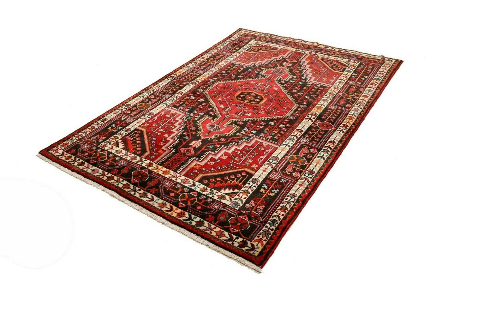 Hamadan Teppich 148 x 216 cm, Schurwolle, geometrisches Muster, handgeknüpft