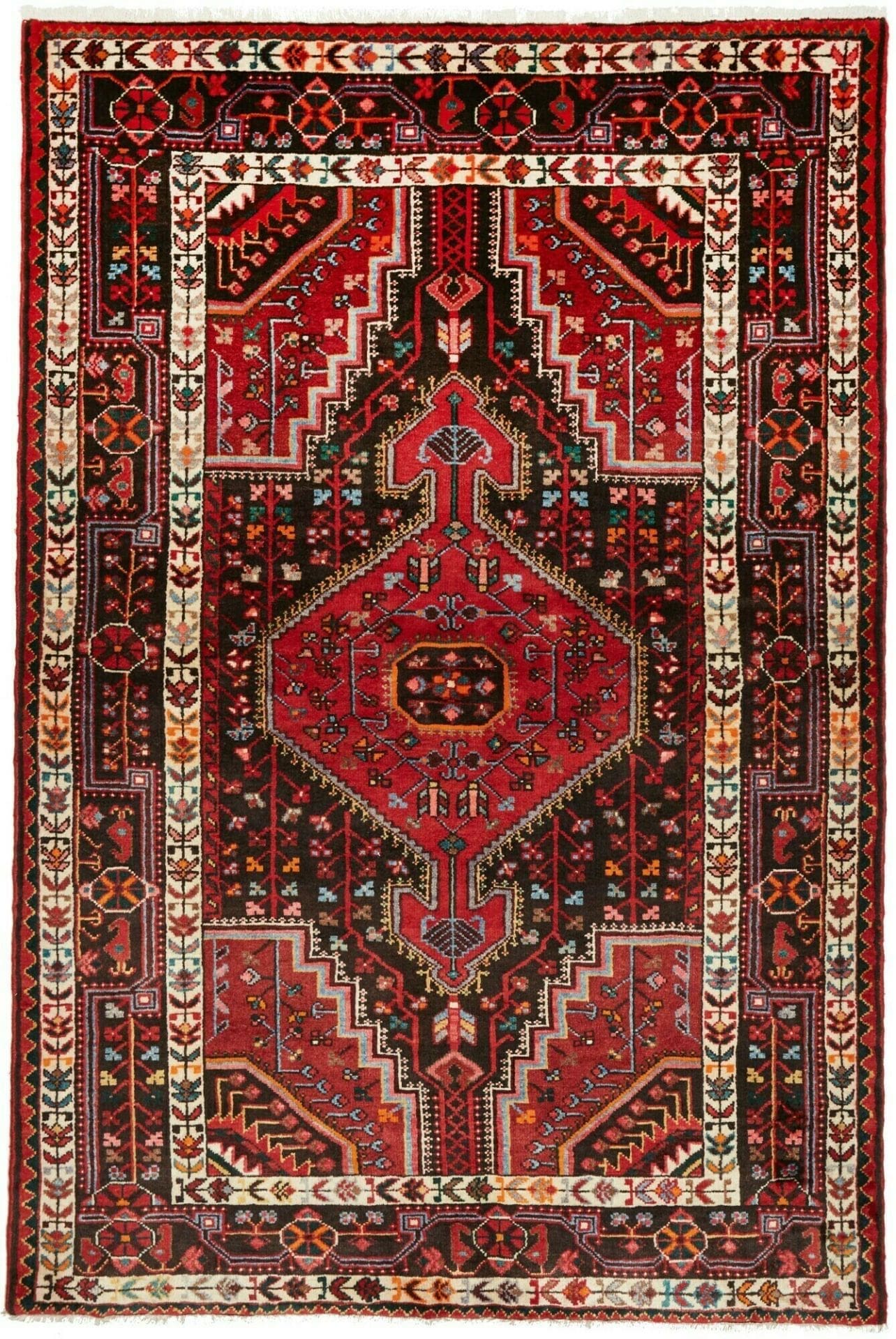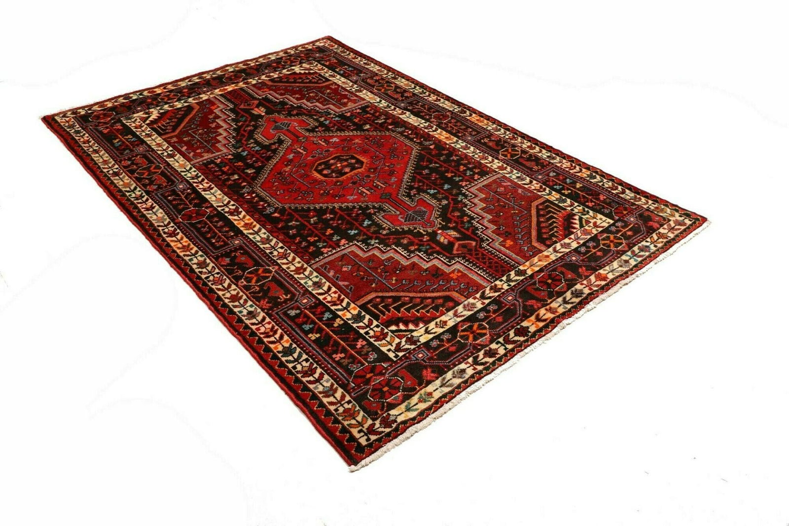 Hamadan Teppich | Knotendichte: ca. 200.000 Knoten/m² | Material: 100% Schurwolle | Größe: 148×216 cm | Herkunft: Iran | Zustand: Handgeknüpft | Muster: Herati und geometrische Formen
