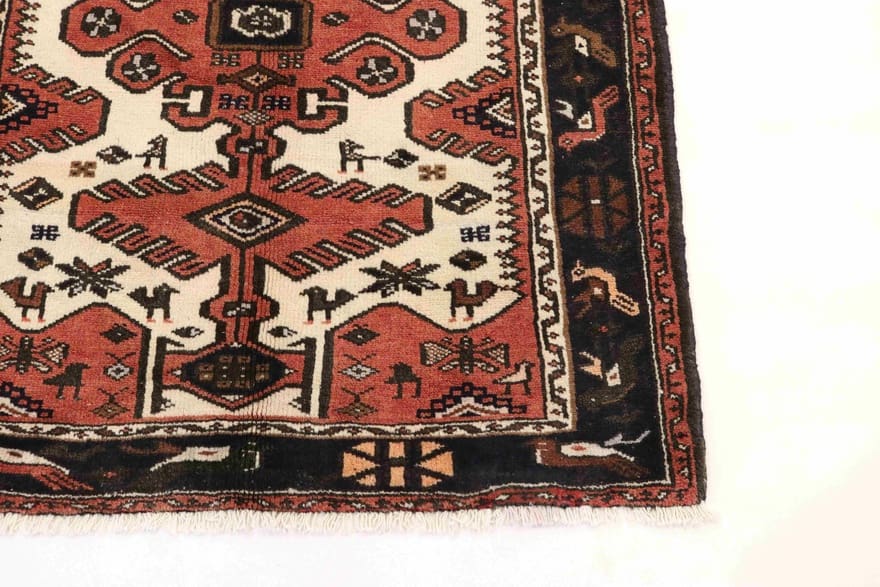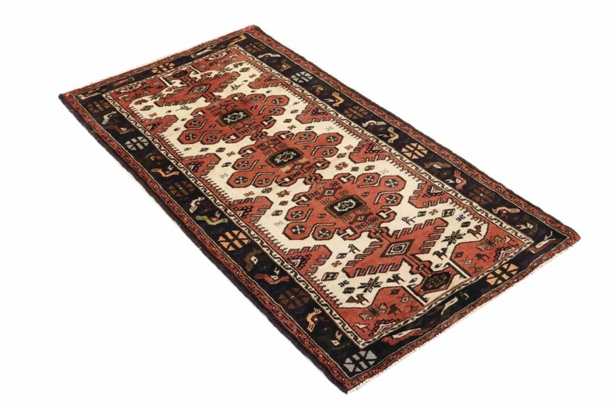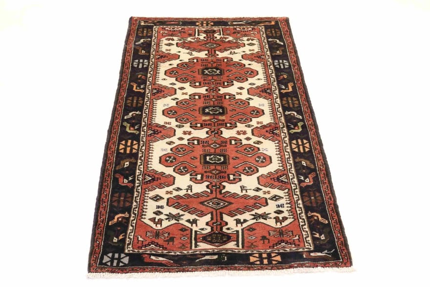 Neu | Handgeknüpfter Teppich aus Hamedan | Knotendichte: 160.000 – 200.000 Knoten/m² | Material: Wolle (Flor) und Baumwolle (Kette) | Größe: 204×106 cm | Zustand: Neu | Ursprung: Iran/Persien | Farbe: Weiß/Beige | Dicke: ca. 8 mm | Gewicht: ca. 5 kg
