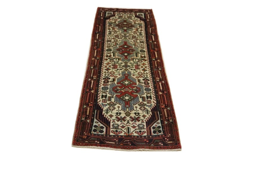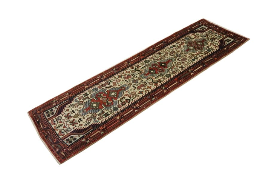 Handgeknüpfter Hamadan Teppich | Knotendichte: 160.000 – 200.000 Knoten/m² | Material: Wolle (Flor), Baumwolle (Kette) | Größe: 300×86 cm | Farbe: Weiß/Beige | Alter: Neuzeitlich (0-20 Jahre) | Zustand: Neu | Ursprung: Iran / Persien | Form: Läufer | Dicke: ca. 10 mm | Gewicht: ca. 9 kg