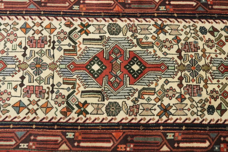 Der Hamadan Teppich stammt aus der gleichnamigen Stadt Hamadan im Iran, einer der ältesten Städte des Landes. Hamadan ist bekannt für seine reiche Teppichwebtradition, die bis in die Antike zurückreicht. Die Provinz hat sich einen Namen gemacht durch ihre Vielfalt an Mustern und Farben, die oft lokale Motive und Symbolik beinhalten.