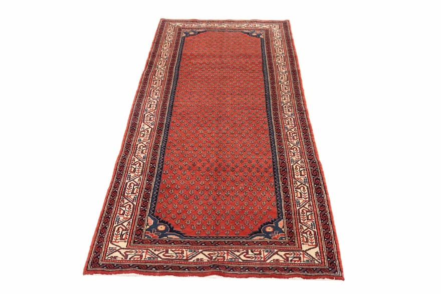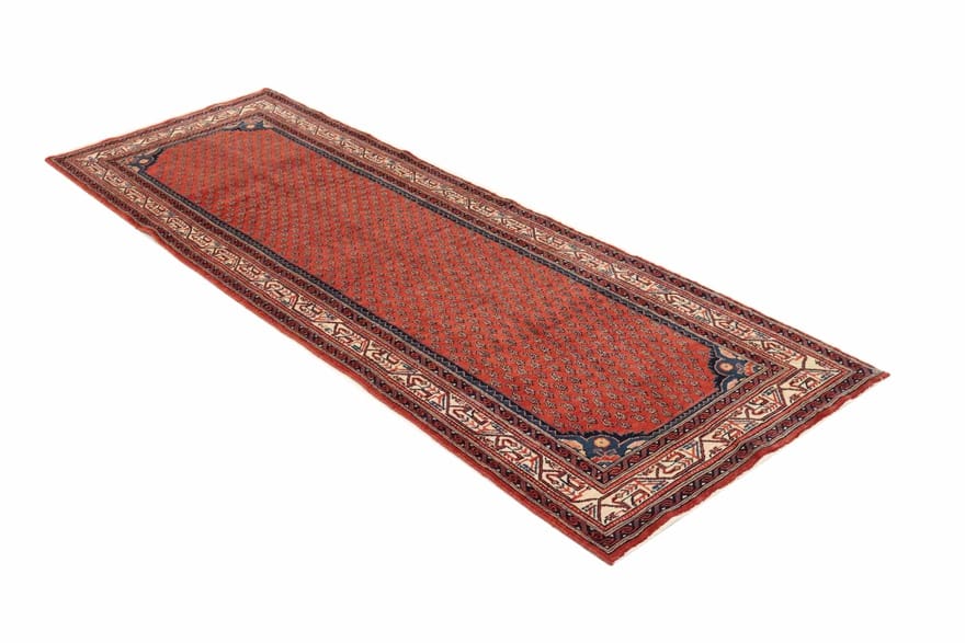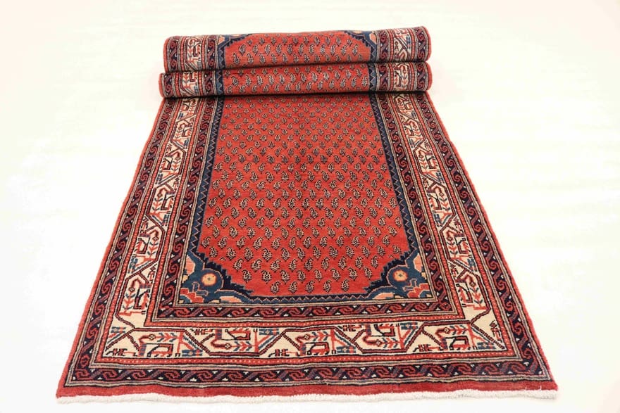Neu | Handgeknüpfter Hamadan Teppich | Knotendichte: 160.000 – 200.000 Knoten/m² | Material: Wolle und Baumwolle | Größe: 322×112 cm | Farbe: Rot/Orange | Ursprung: Iran/Persien | Dicke: ca. 8 mm | Gewicht: ca. 12 kg