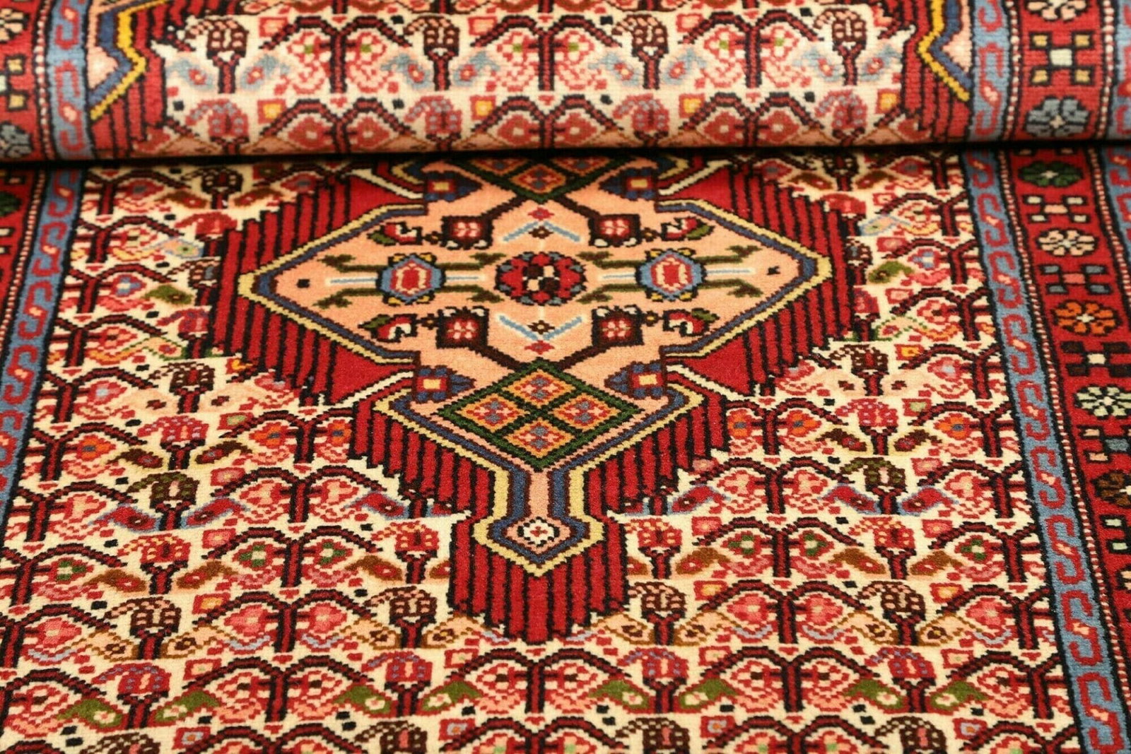 Der Hamadan Teppich mit seinem hochwertigen Herati-Muster ist nicht nur ein funktionales Stück für Ihr Zuhause, sondern auch ein zeitloses Kunstwerk, das die Geschichte und Handwerkskunst des iranischen Teppichknüpfens repräsentiert. Ob im Wohnzimmer, Schlafzimmer oder Flur – dieser Teppich ist ein Blickfang, der jeden Raum aufwertet und eine warme, einladende Atmosphäre schafft.