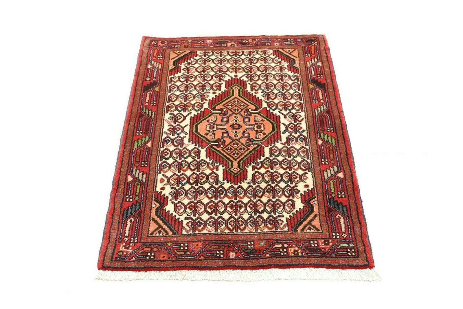 302$Ursprünglicher Preis war: 302$254$Aktueller Preis ist: 254$Hamadan Teppich | Knotendichte: ca. 200.000 Knoten/m² | Material: 100% Schurwolle und 100% Baumwolle | Größe: 83 x 126 cm | In ausgezeichnetem Zustand | Herkunft: Iran | Muster: Herati und geometrische Designs | Verarbeitung: Handgeknüpft