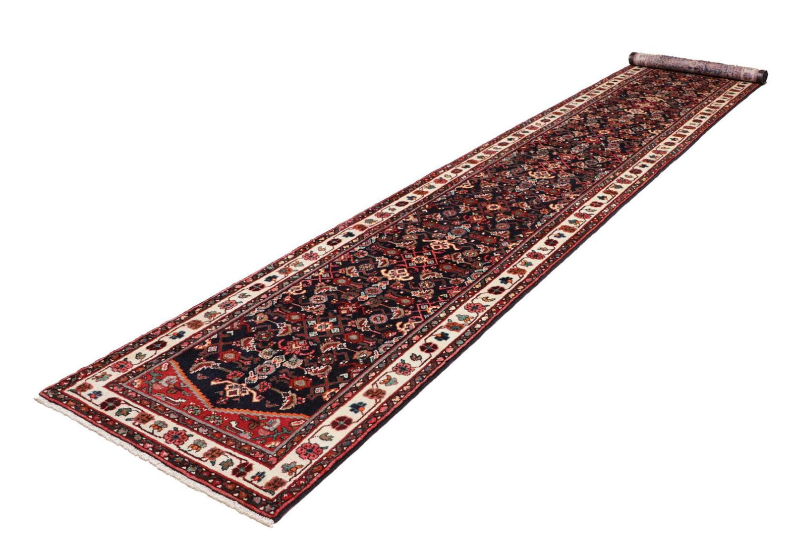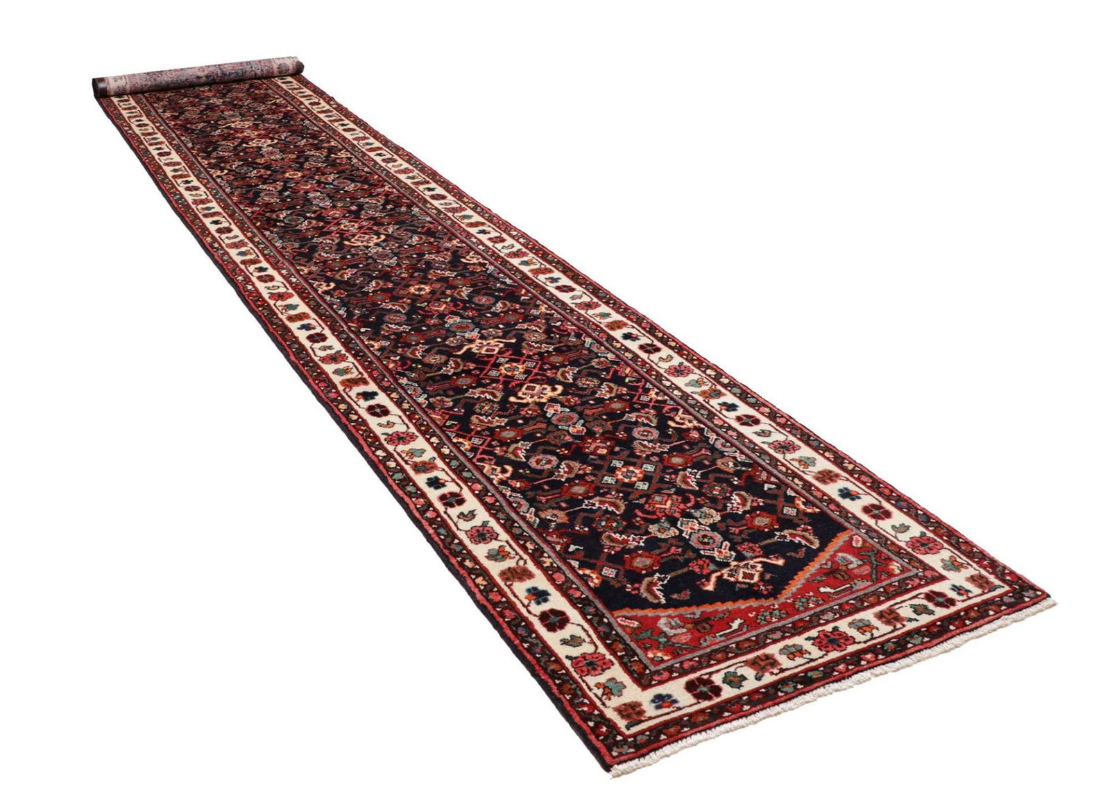 Hamadan Teppich 93 x 485cm, Schurwolle, Herati-Muster, handgeknüpft