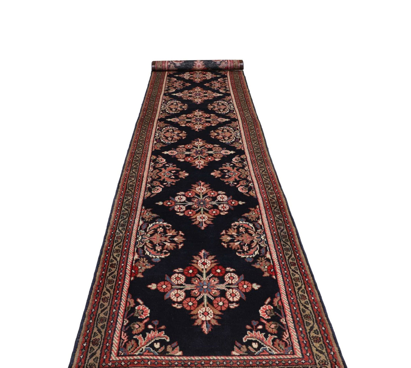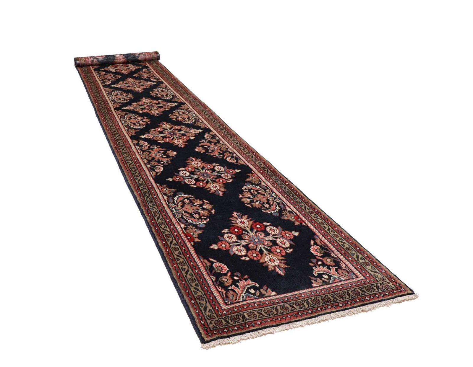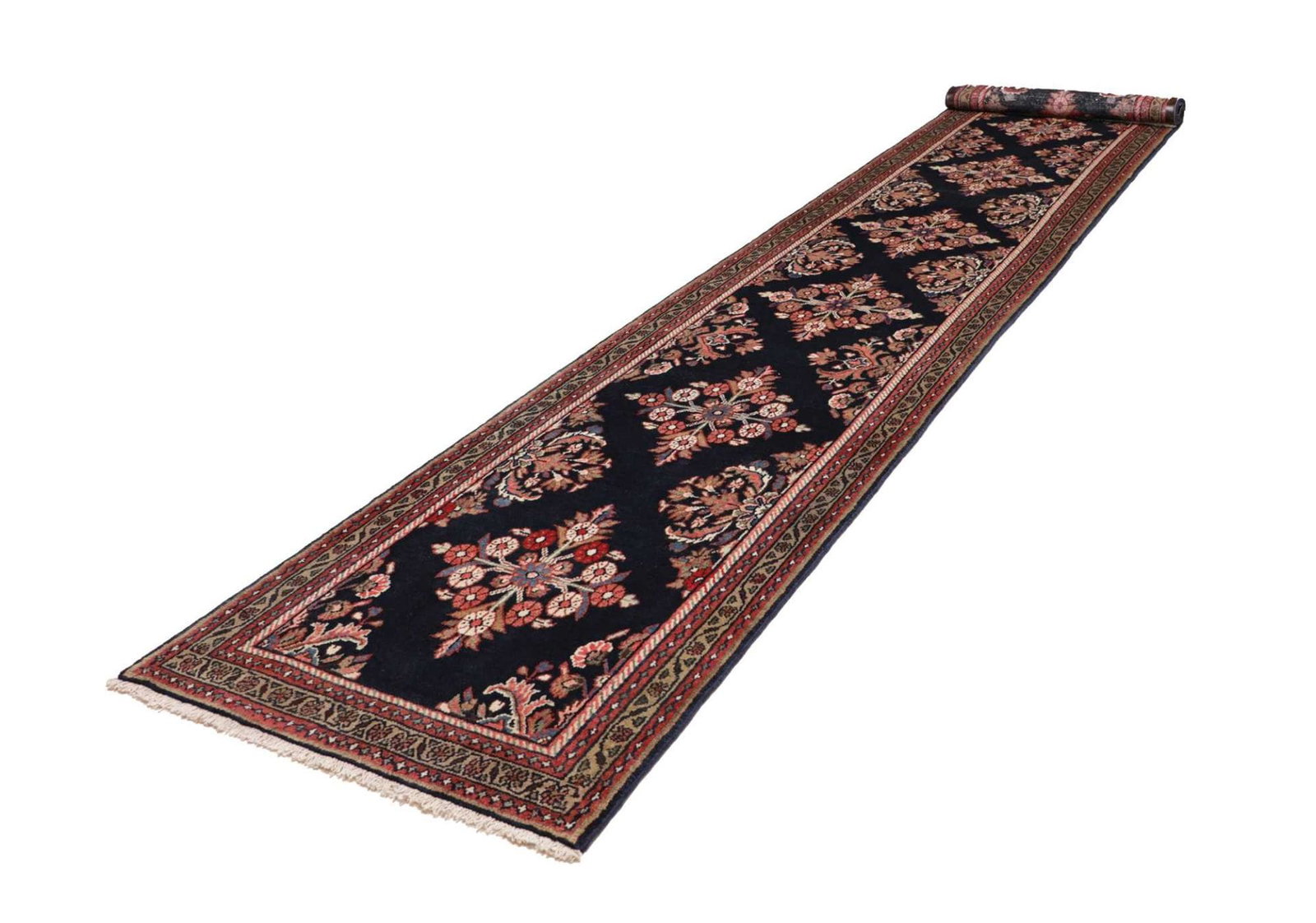 Hamadan Teppich 98 x 513 cm, Herati-Muster, Perserteppich handgeknüpft