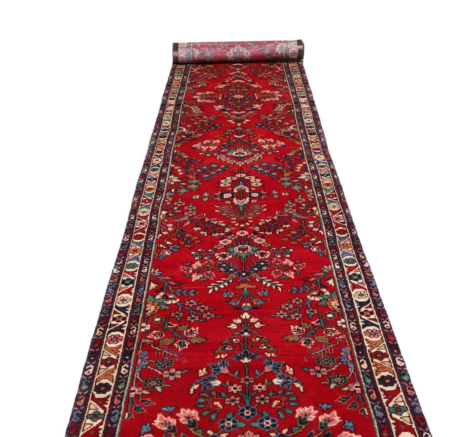 1145$Ursprünglicher Preis war: 1145$903$Aktueller Preis ist: 903$Hamadan Teppich | Größe: 98 x 598 cm | Knotendichte: ca. 200.000 Knoten/m² | Flor: 100% Schurwolle | Kette: 100% Baumwolle | Verarbeitung: Handgeknüpft | Herkunft: Iran | Muster: Herati und geometrische Designs | Zustand: Ausgezeichnet