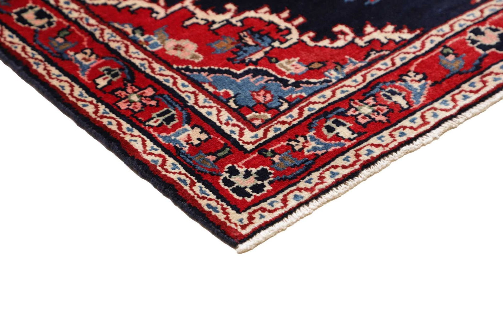 Der Hamadan Teppich präsentiert ein klassisches Herati-Muster, das durch seine harmonischen Farben und Formen besticht. Dieses traditionelle Muster, auch als Fischmuster bekannt, symbolisiert Fülle und Wohlstand. Die geschickte Anordnung der Motive verleiht dem Teppich eine dynamische und lebendige Ausstrahlung, die in jedem Raum zur Geltung kommt.