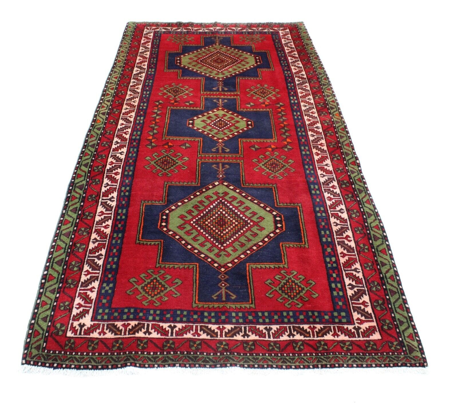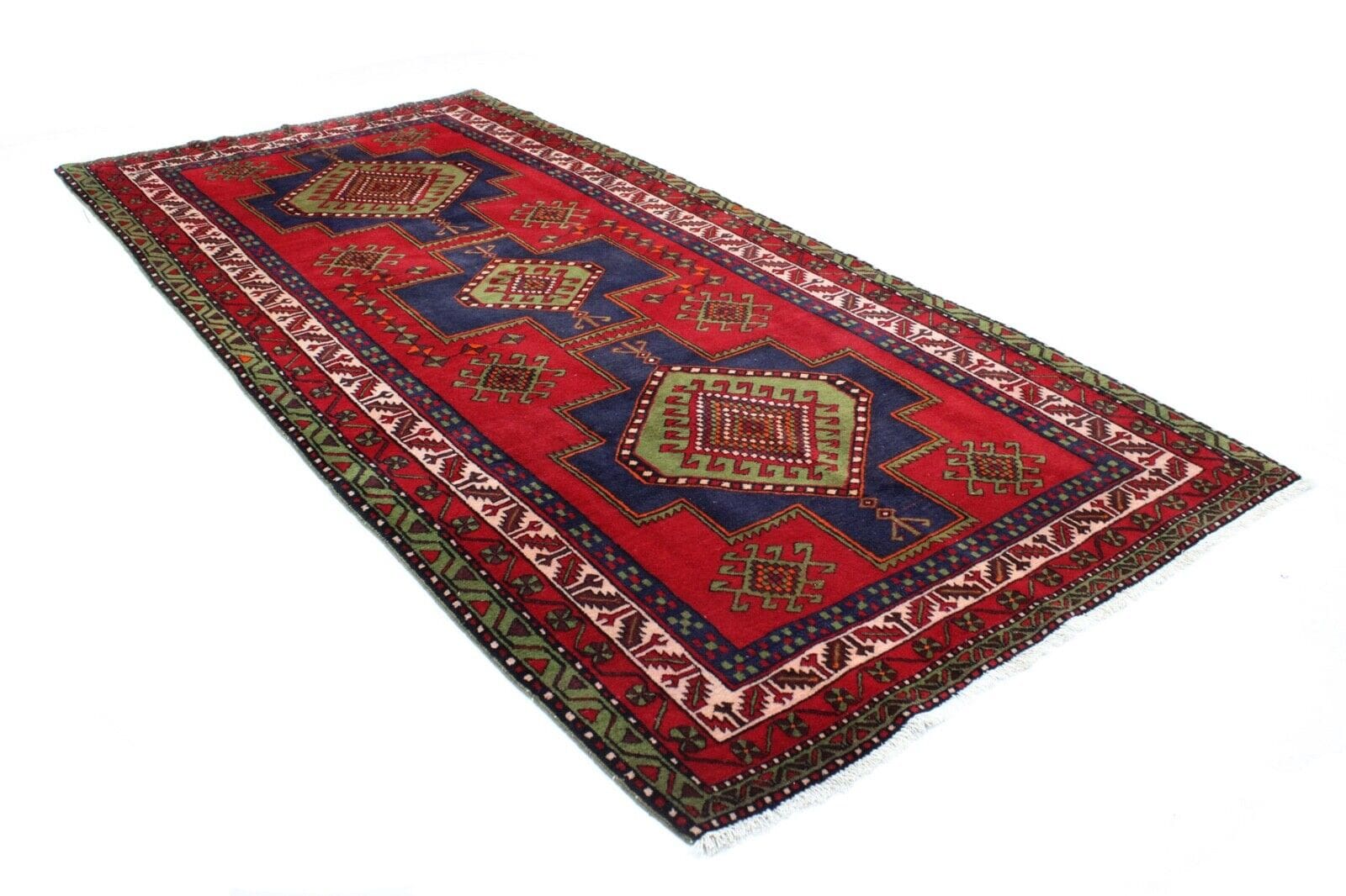 Handgeknüpfter Hamedan Orientteppich | Größe: 364 x 166 cm | Material: 100% Wolle, 100% Baumwolle | Zustand: Gebraucht, gewaschen | Knotendichte: Hochwertige Verarbeitung | Herstellungszeitraum: 1980-1989 | Regionales Design: Hamedan | Farbe: Rot | Original aus Persien