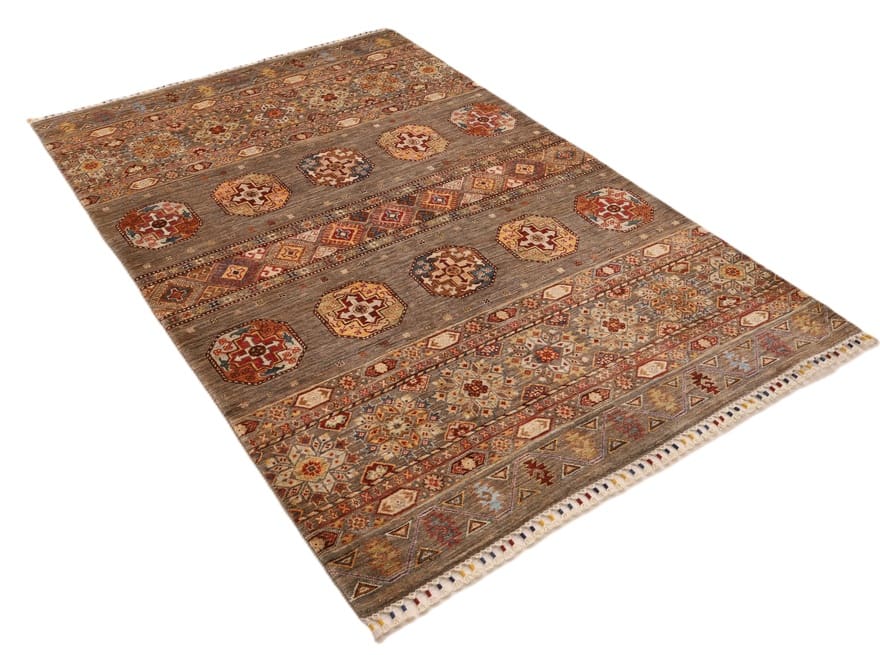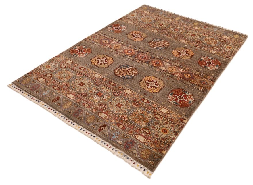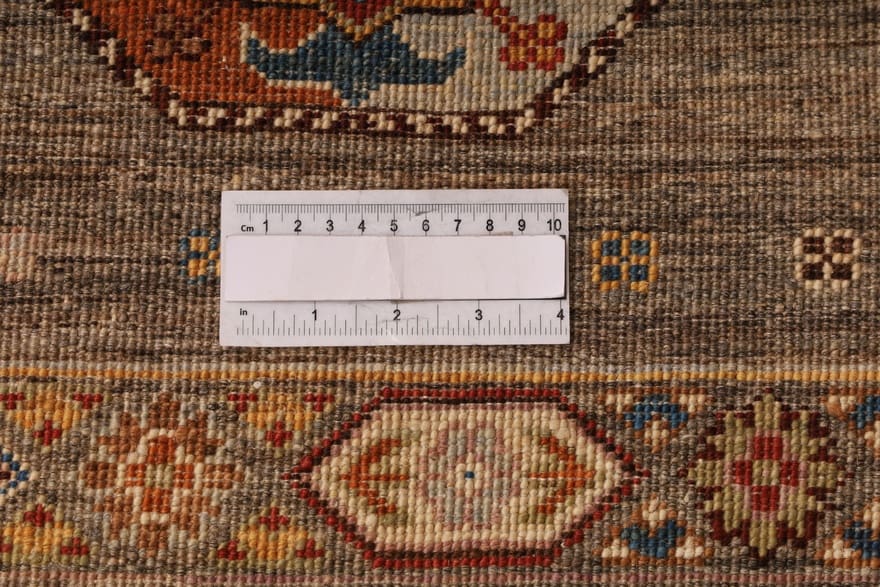 Dieser Orientteppich ist aus 100 % natürlicher Wolle gefertigt, was ihm nicht nur eine warme und weiche Oberfläche verleiht, sondern auch hervorragende Eigenschaften im Hinblick auf die Pflege und Langlebigkeit. Wolle ist von Natur aus schmutzabweisend und hat eine hohe Strapazierfähigkeit, was bedeutet, dass der Teppich auch in stark frequentierten Räumen hervorragend geeignet ist. Die handgeknüpfte Technik sorgt dafür, dass die Farben lebendig und die Muster klar zur Geltung kommen. Mit einer hohen Knotendichte garantiert dieser Teppich eine lange Lebensdauer und Exklusivität.