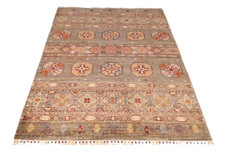 Die Designs der Orientteppiche sind vielfältig und reichen von geometrischen Formen bis hin zu floralen Mustern, die oft die Naturlandschaften der Herkunftsregion repräsentieren. Unser handgefertigter Filpay Orientteppich ist bunt und elegant, was bedeutet, dass er lebendige, harmonische Farben in sich vereint. Solche Teppiche sind nicht nur dekorativ, sondern auch Ausdruck der Identität und Kunstfertigkeit der Region.