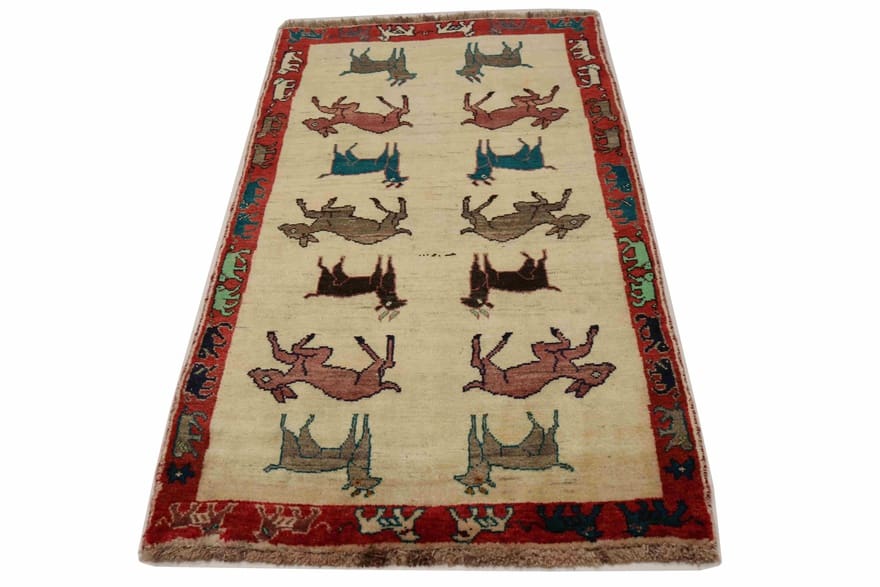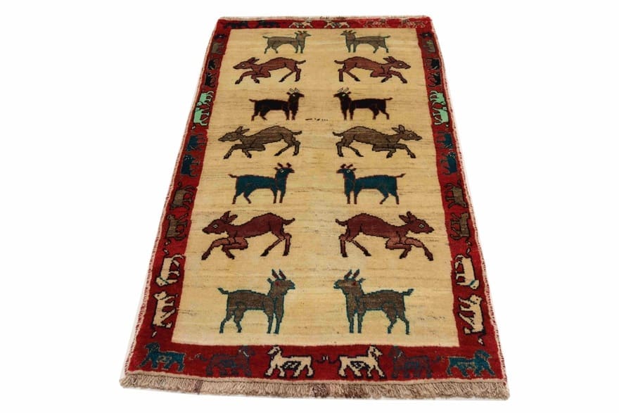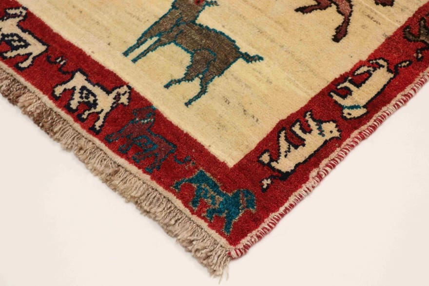 Handgeknüpfter Ghashghai Teppich | Knotendichte: 160.000 – 200.000 Knoten/m² | Material: Hochwertige Wolle | Größe: 168×91 cm | Farbe: Weiß/Beige | Zustand: Neu | Ursprung: Iran / Persien | Flor: Wolle | Dicke: ca. 10 mm | Gewicht: ca. 6 kg
