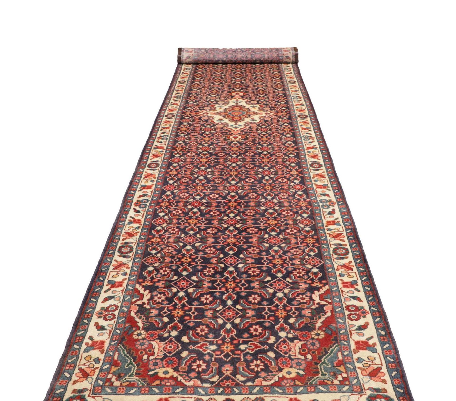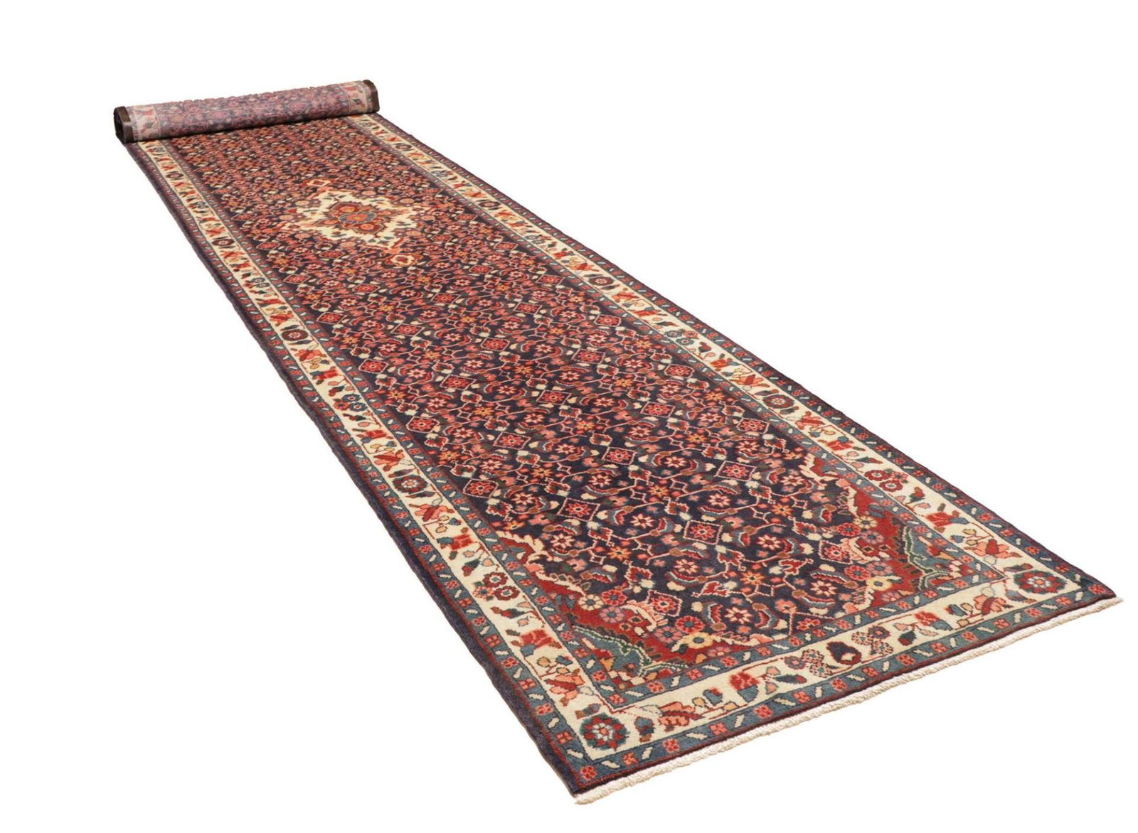 Handgeknüpfter Hamadan Teppich 121 x 520cm, Schurwolle, Herati-Muster