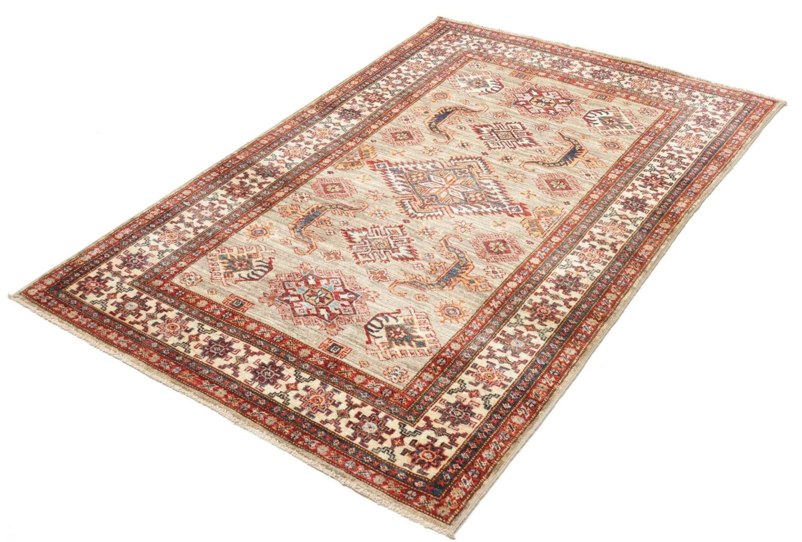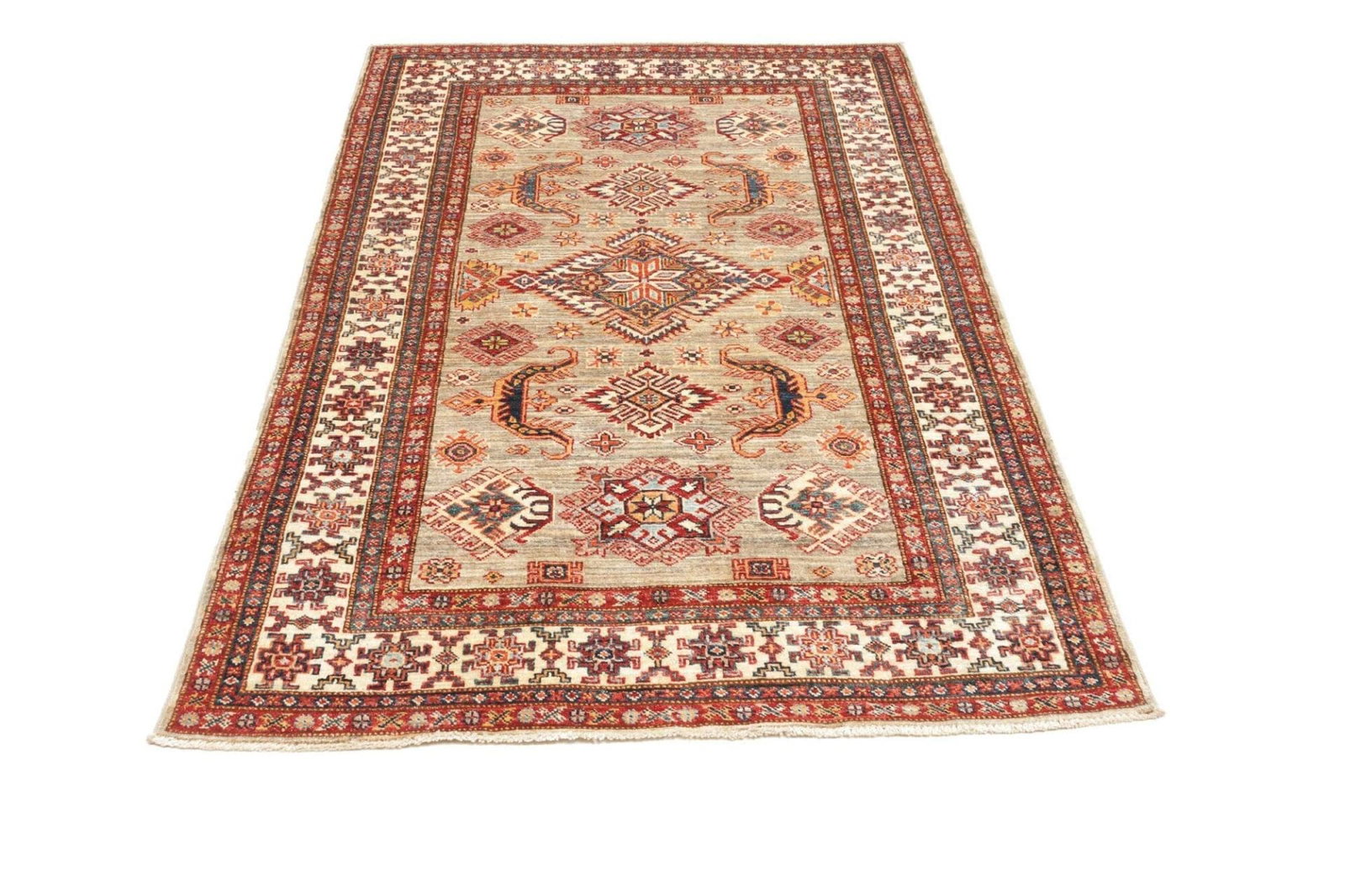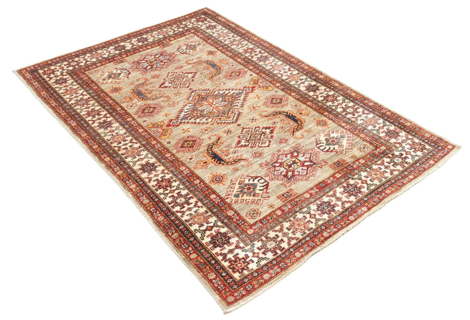 Handgeknüpfter Kazak Orientteppich 121 x 178cm, geometrisch, Wolle