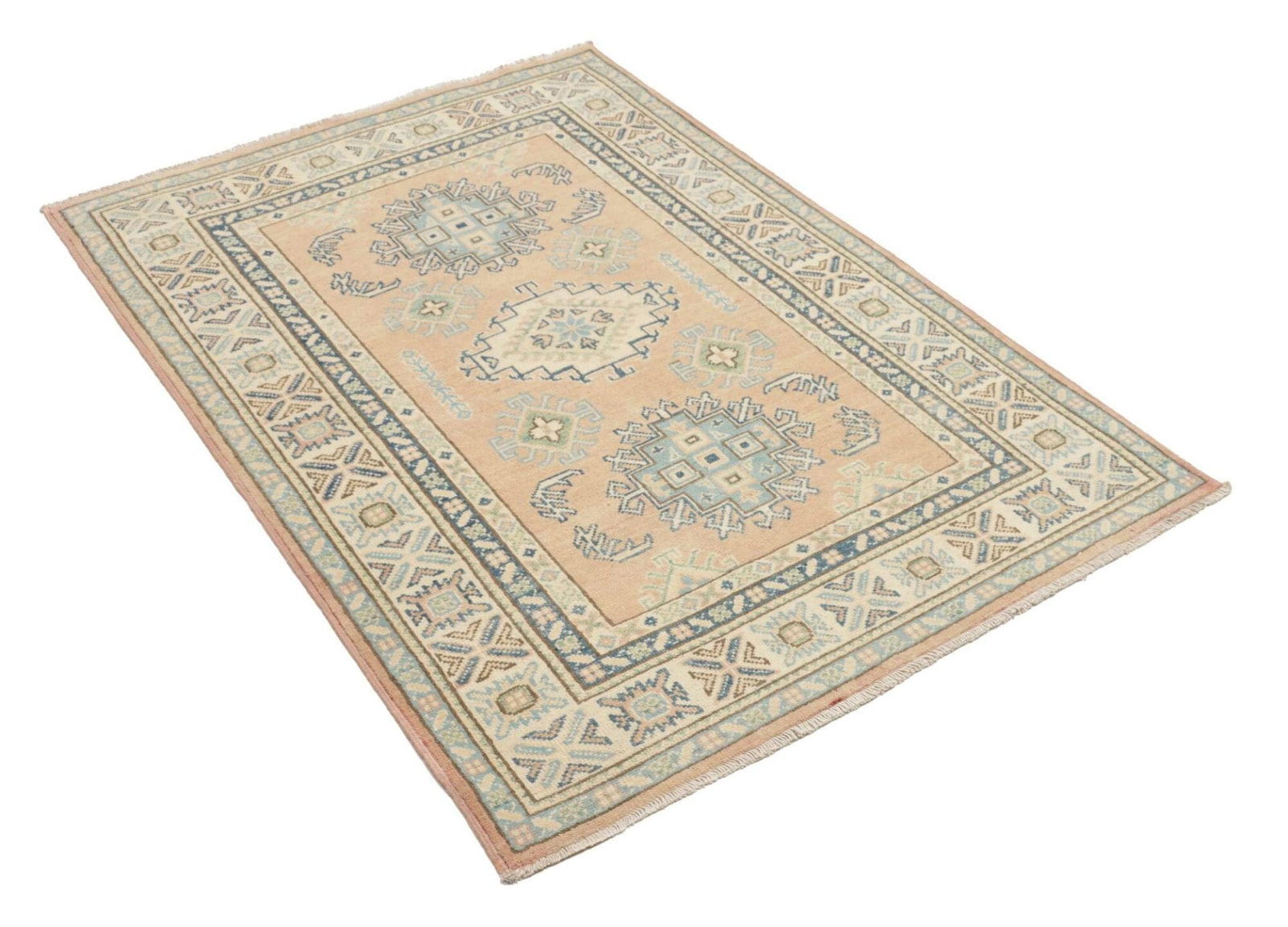 519$Ursprünglicher Preis war: 519$436$Aktueller Preis ist: 436$Kazak Teppich | Knotendichte: ca. 100.000 Knoten/m² | Flor: 100% Schurwolle | Kette: 100% Baumwolle | Größe: 105 x 147 cm | Herkunft: Pakistan | Zustand: Handgeknüpfte Qualität | Geometrische Muster und Figuren