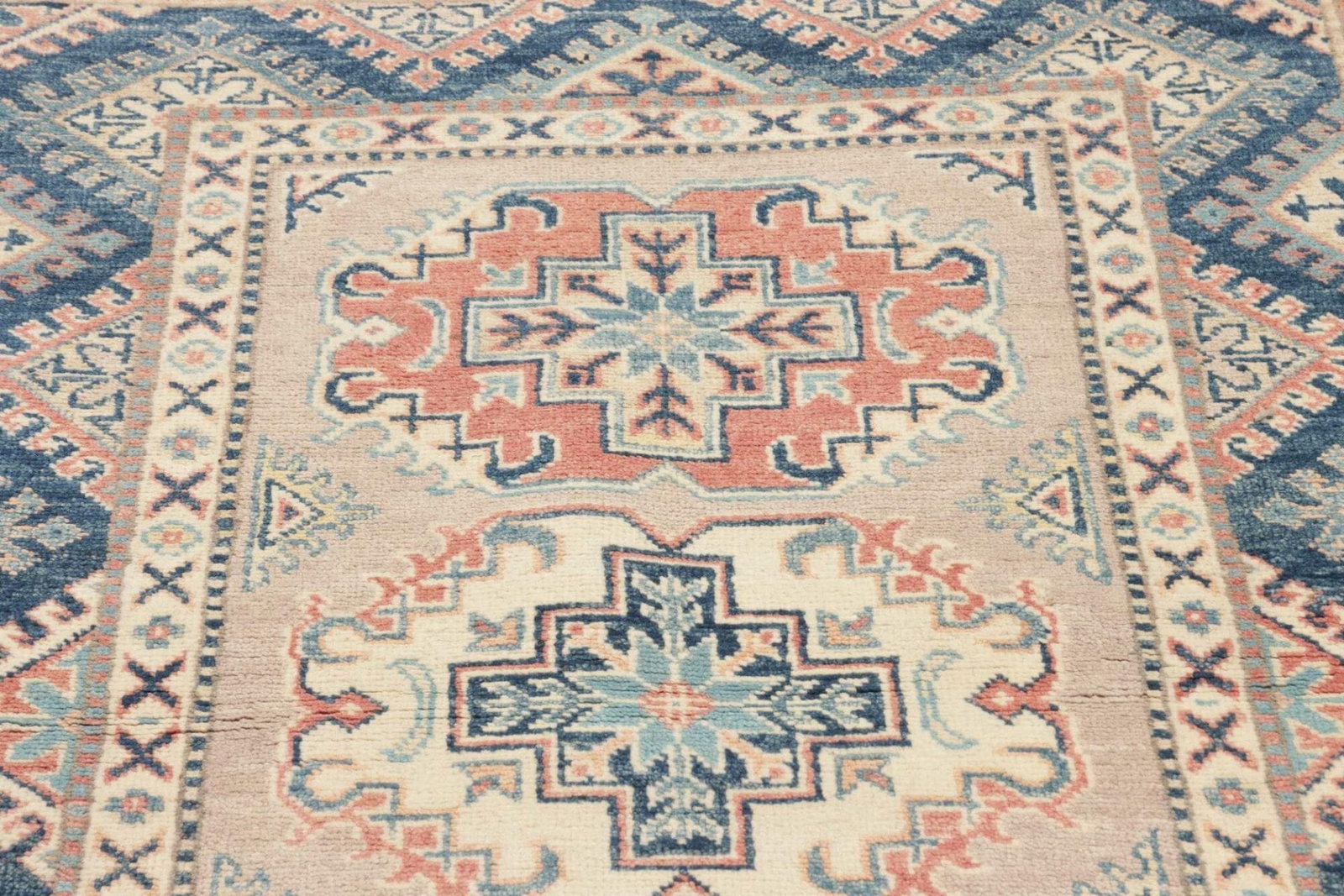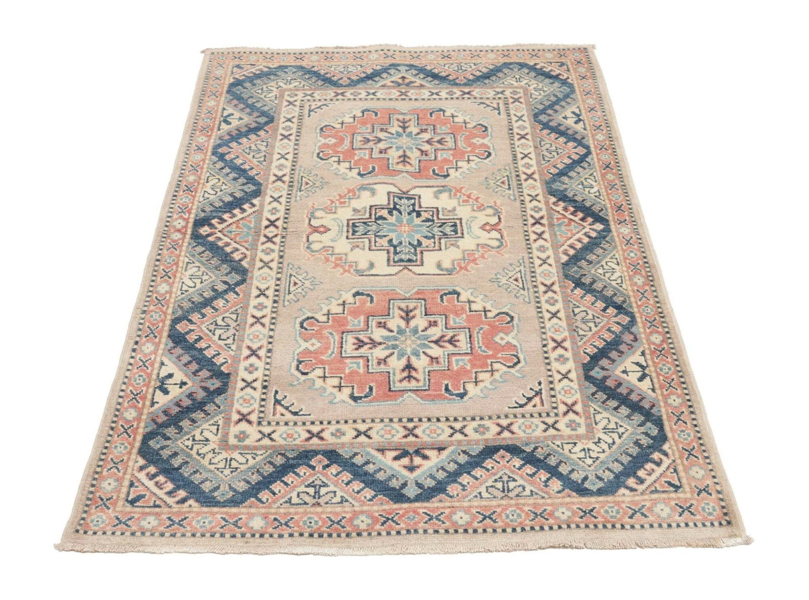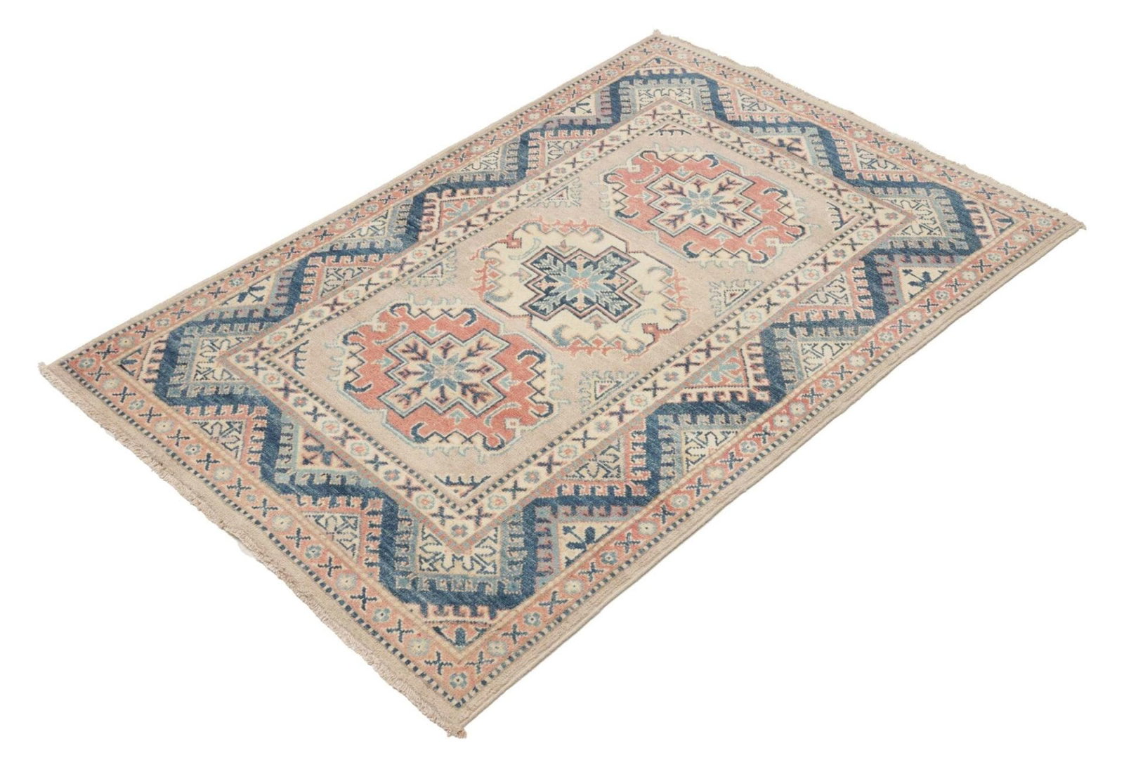 Handgeknüpfter Kazak Teppich 99 x 141cm – geometrisches Muster – Orientteppich