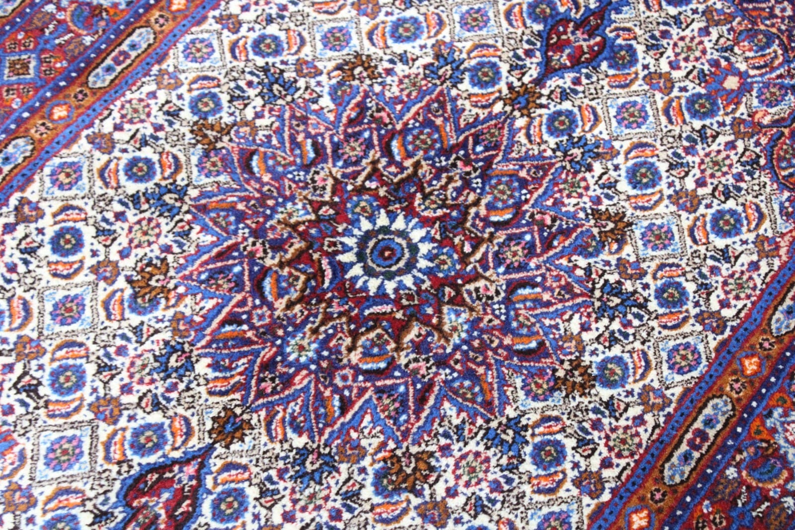 Ein weiterer Vorteil des handgeknüpften Moud Orientteppichs ist seine Vielseitigkeit. Er fügt sich mühelos in verschiedene Einrichtungsstile ein, ob modern, klassisch oder rustikal.