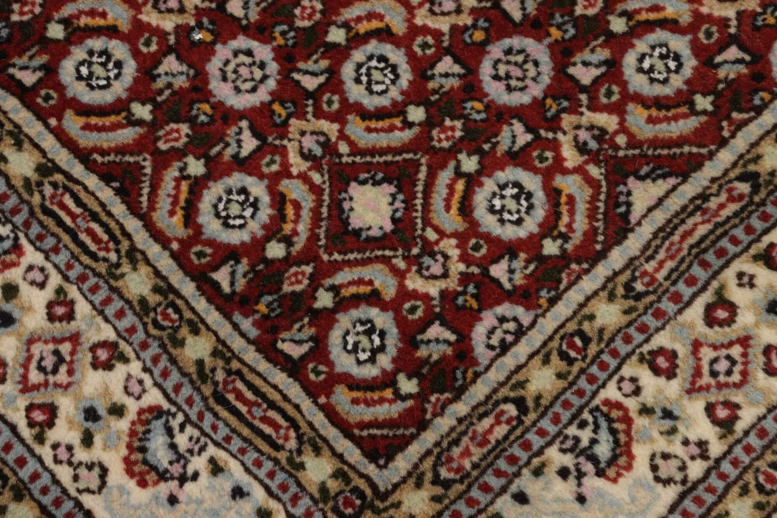 Moud ist eine Stadt in der Provinz Khorasan im Iran, die für ihre hervorragenden Teppichknüpftraditionen bekannt ist. Die Region zeichnet sich durch eine lange Geschichte in der Kunst des Teppichwebens aus, die bis ins 16. Jahrhundert zurückreicht. In dieser Zeit begannen die Handwerker, die feinen Techniken und einzigartigen Designs zu perfektionieren, die bis heute beibehalten werden. Moud-Teppiche sind vor allem für ihre lebendigen Farben und detailreichen floralem Muster bekannt, das häufig stilisierte Blumen und geometrische Formen kombiniert, die den Einfluss der Natur widerspiegeln.