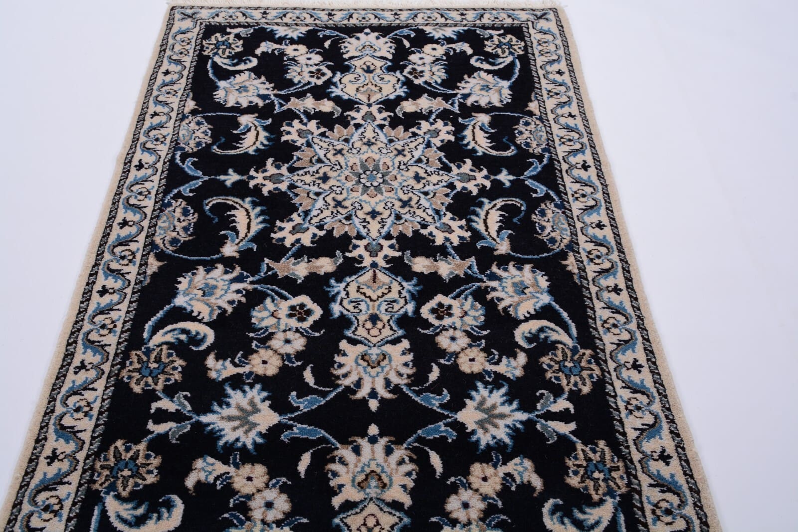 Handgeknüpfter Nain Läufer | Größe: 203 x 78 cm | Knotendichte: 300.000 Knoten/m² | Material: 100% Schurwolle | Zustand: Neu, perfekt | Herkunft: Persien | Dicke: ca. 12 mm | Florhöhe: 12 mm | Design: Floralmotiv mit Medaillon | Für Fußbodenheizung geeignet | Stil: Traditionell Orientalisch/Persisch