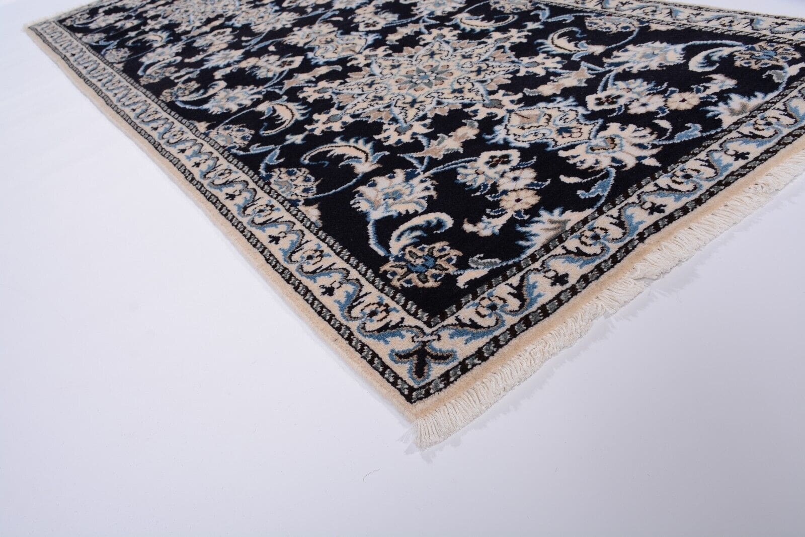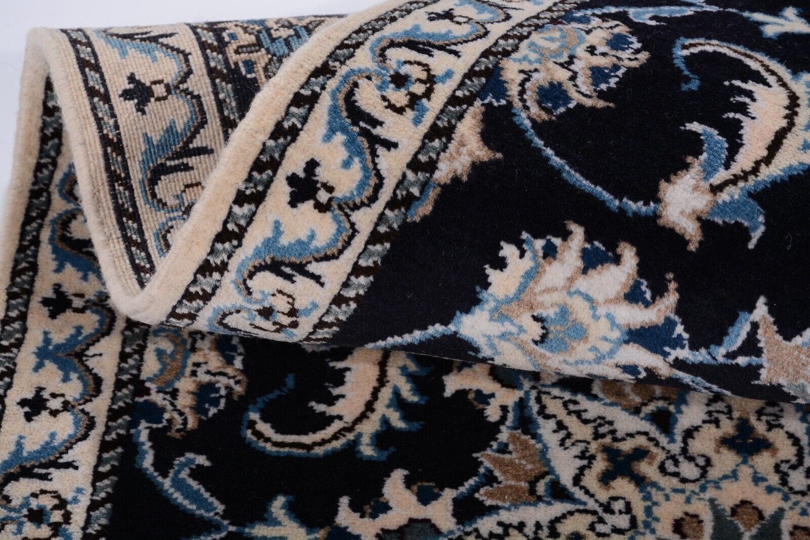 Dieser Teppich stammt aus der berühmten Stadt Nain im Iran, die für ihre exquisite Teppichkunst bekannt ist. Nain ist seit Jahrhunderten ein Zentrum der Teppichproduktion und zeichnet sich durch die Verwendung eleganter Farbtöne und klassischer Designs aus. Die Traditionshandwerker dieser Region haben über Generationen hinweg Techniken perfektioniert, die es ihnen ermöglichen, einzigartige und zeitlose Teppiche herzustellen. Jeder Nain Teppich erzählt eine Geschichte von Kultur, Handwerk und Ästhetik und ist somit nicht nur ein Bodenbelag, sondern auch ein Stück Geschichte.