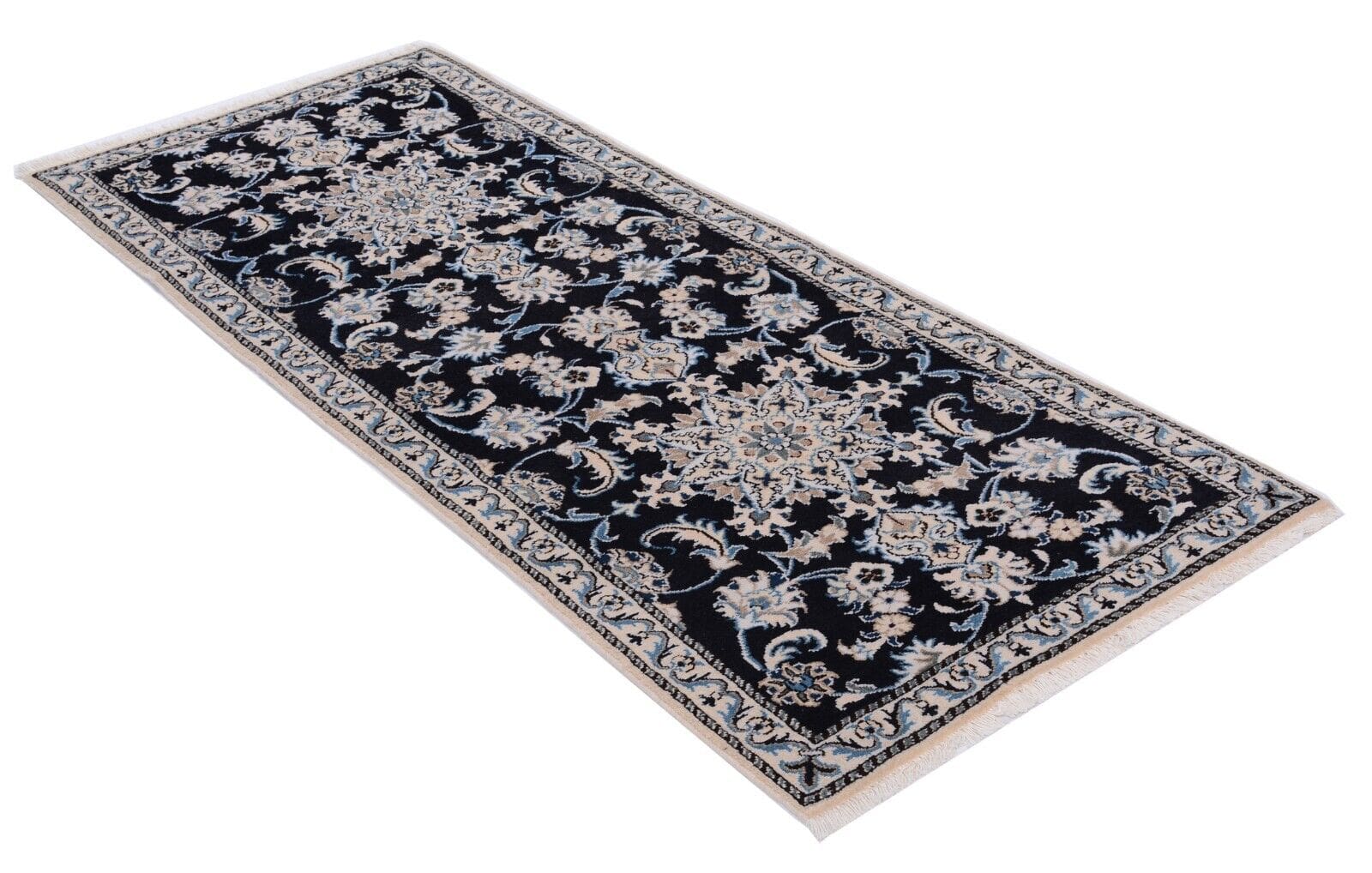 Handgeknüpfter Nain Läufer 203×78 cm, 300.000 Knoten, floral Blau
