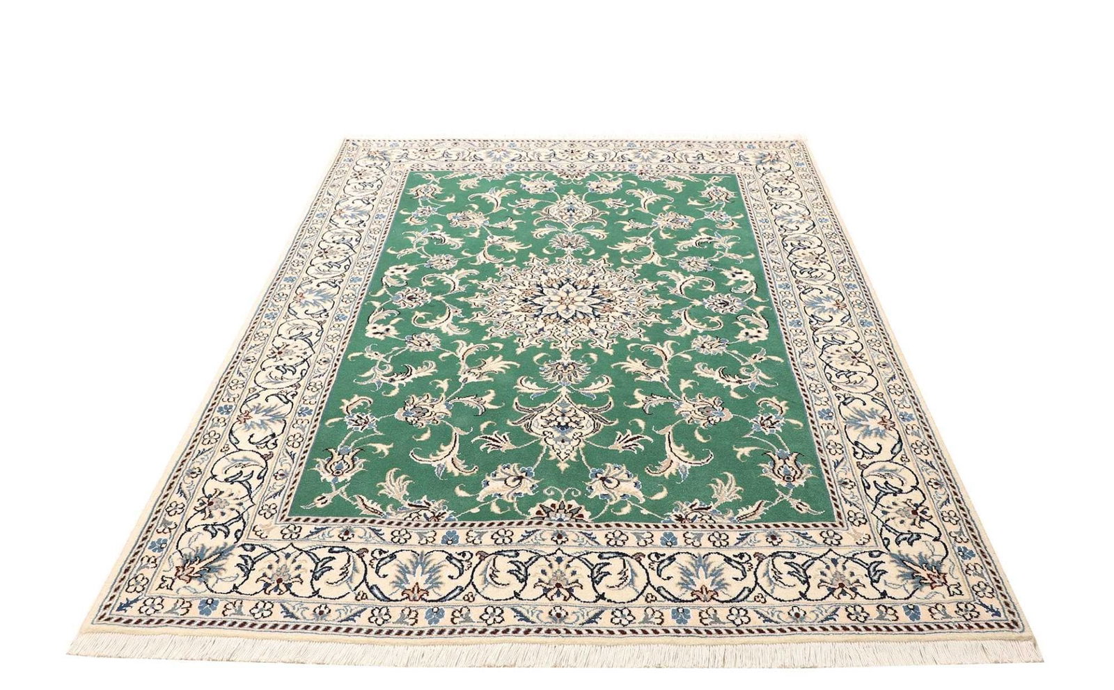 Handgeknüpfter Nain Teppich 155 x 205 cm, florale Muster, Perserteppich H1