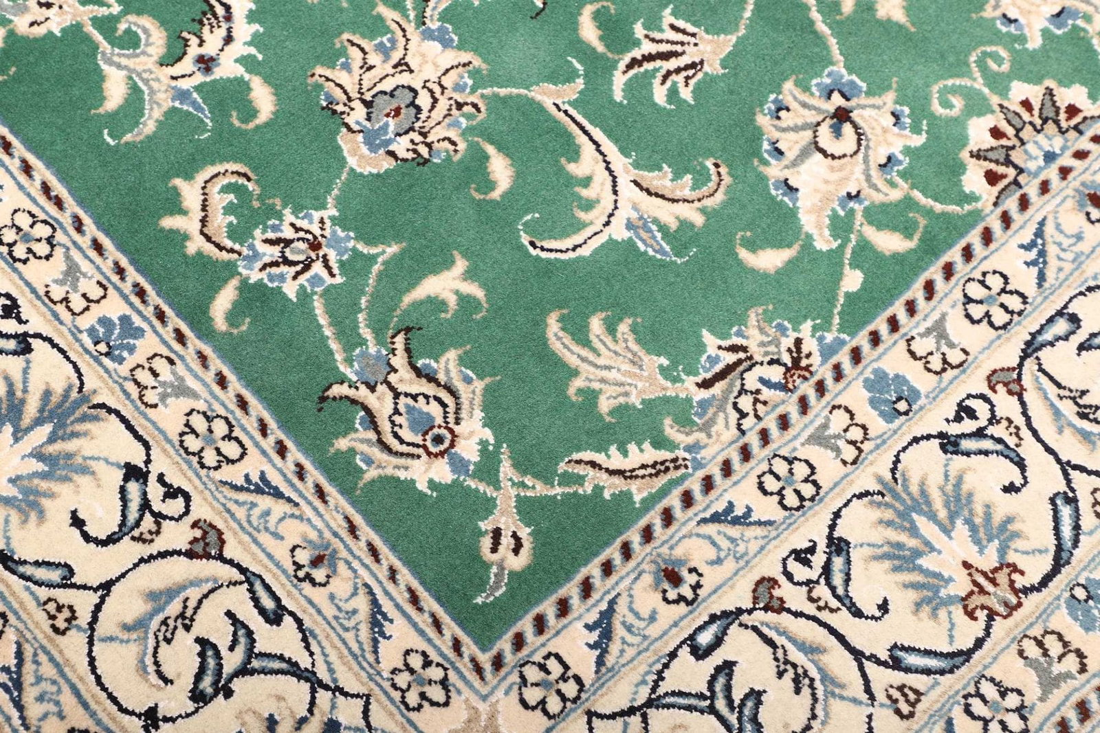 Nain Teppich | Knotendichte: ca. 200.000 Knoten/m² | Material: 100% Schurwolle (Flor), 100% Baumwolle (Kette) | Größe: 155 x 205 cm | Handgeknüpft | Herkunft: Iran | Zustand: Exklusiv und hochwertig | Muster: Klassische florale Motive mit königsblauem Farbton