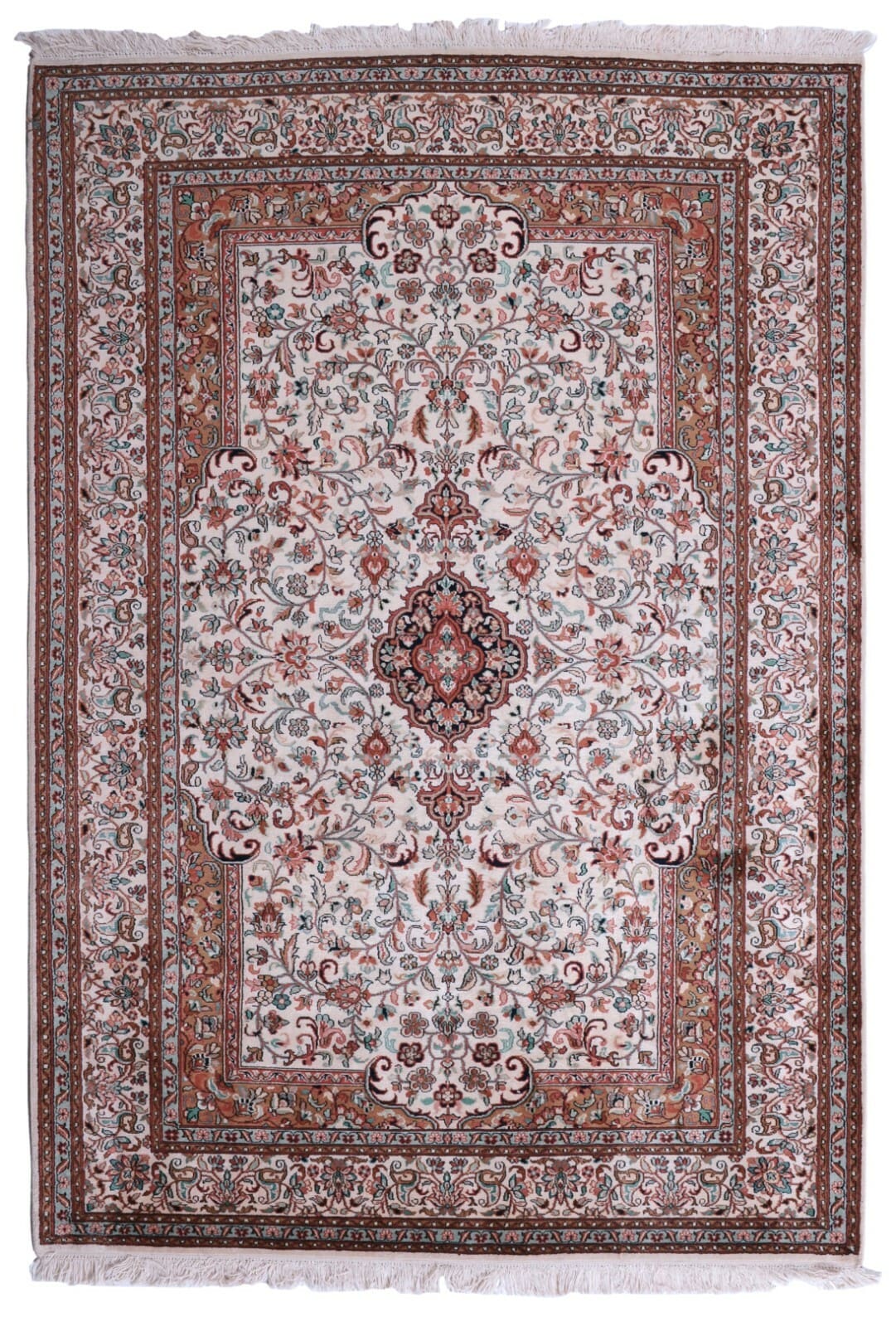 Handgeknüpfter Orientteppich | Größe: 187 x 130 cm | Knotendichte: 550.000 Knoten/m² | Material: 100% Seide | Kette: 100% Baumwolle | Florhöhe: ca. 8 mm | Zustand: Neu und perfekt | Herkunft: Indien | Muster: Orientalisch | Geeignet für Fußbodenheizung | Stil: Traditionell Orientalisch/Persisch