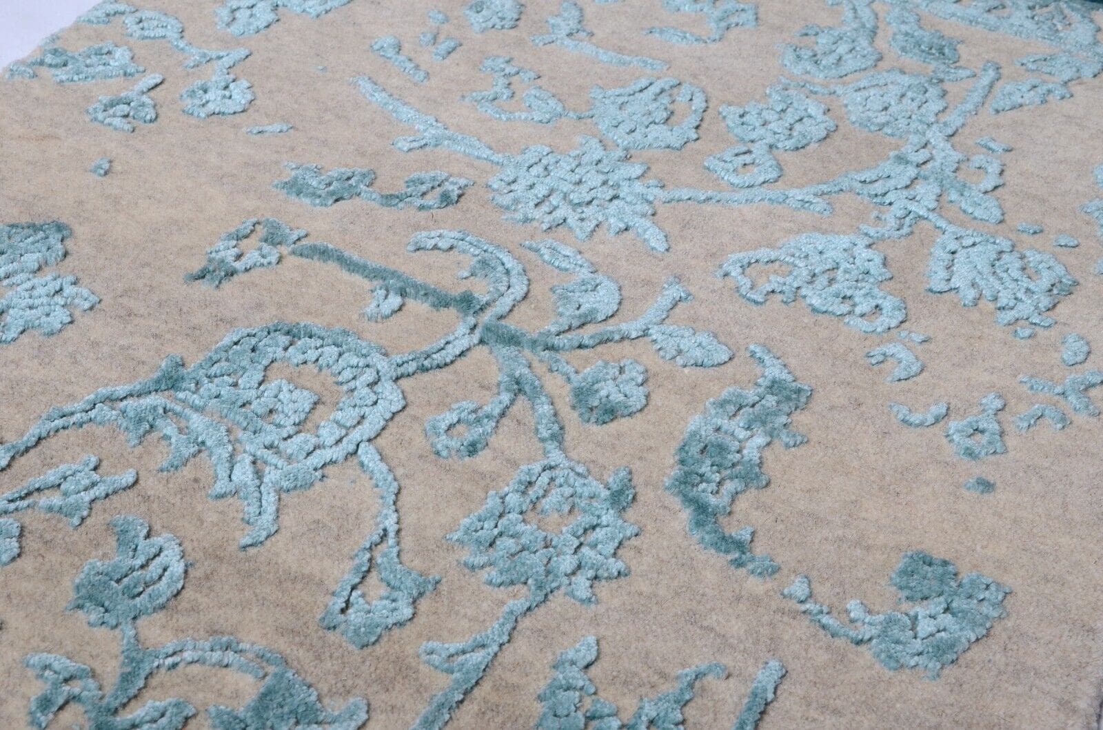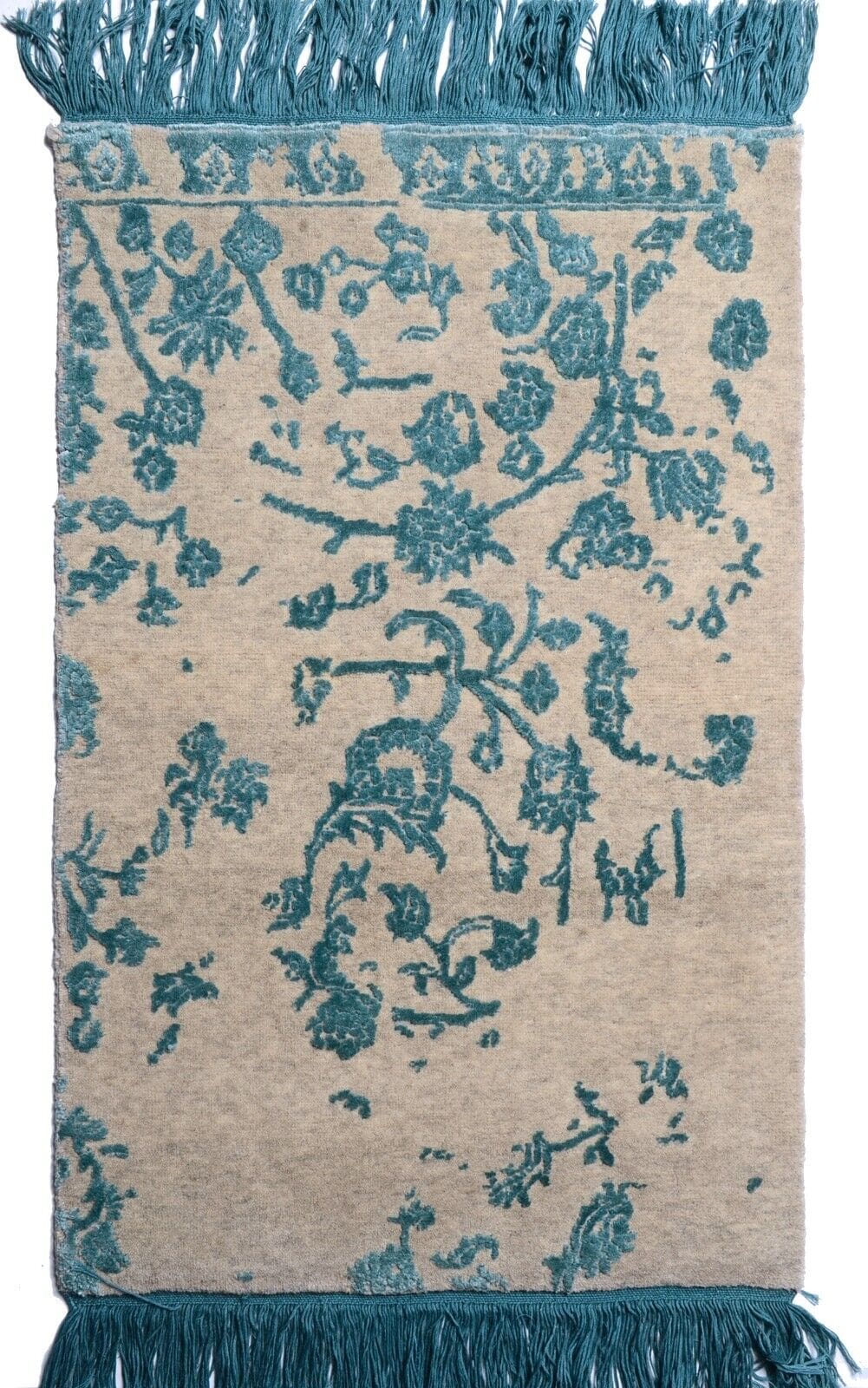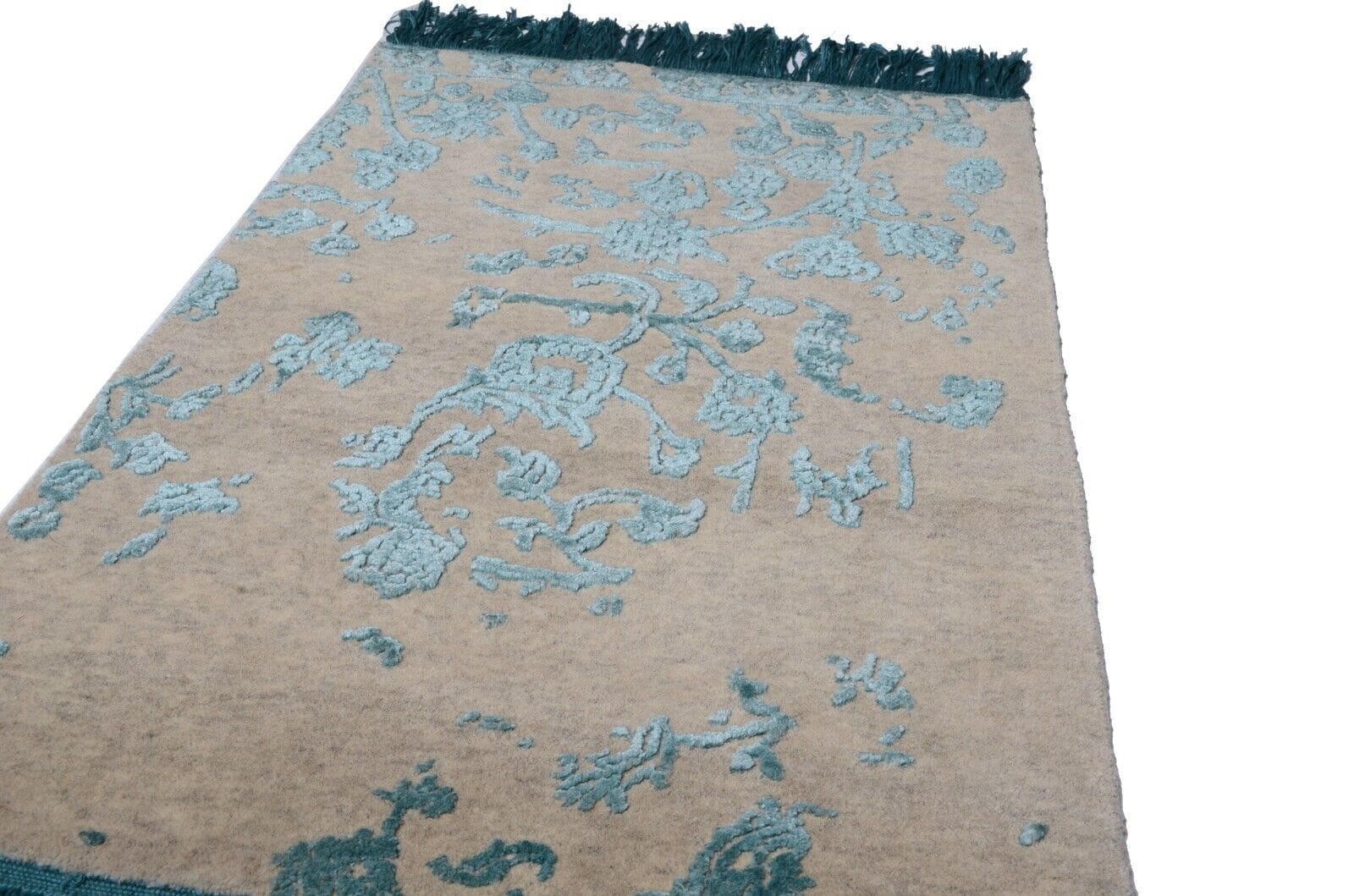 Handgeknüpfter Orientteppich | Größe: 88 x 56 cm | Material: 85% Schurwolle, 15% Viscose | Knotendichte: 180.000 – 200.000 Knoten/m² | Zustand: Neu, perfekt | Herkunft: Indien | Florhöhe: ca. 10 mm | Für Fußbodenheizung geeignet | Stil: Modern, geometrisches Muster