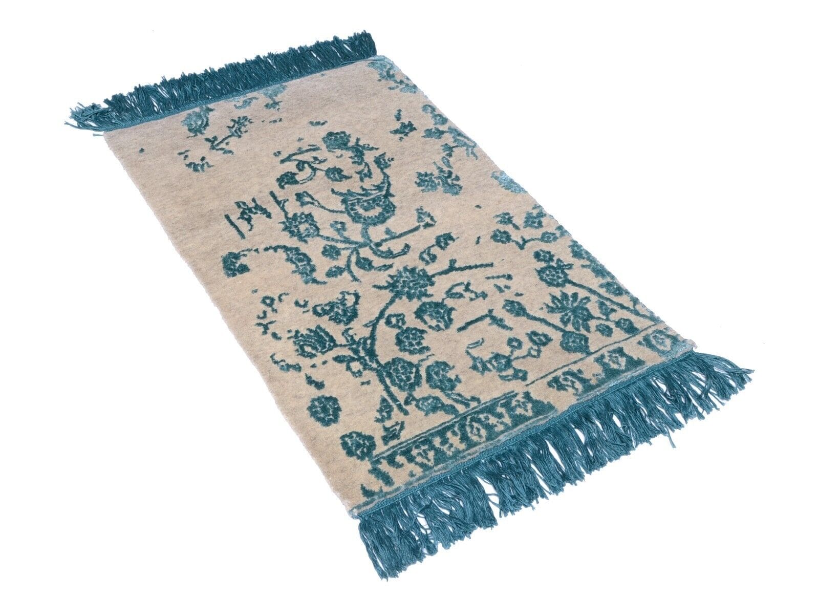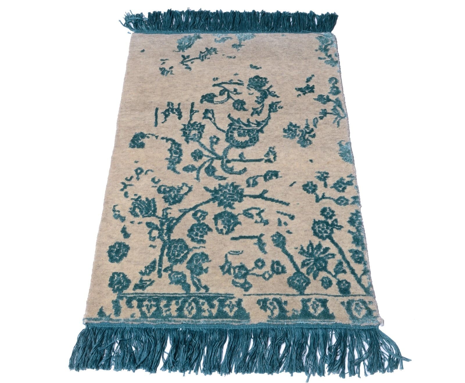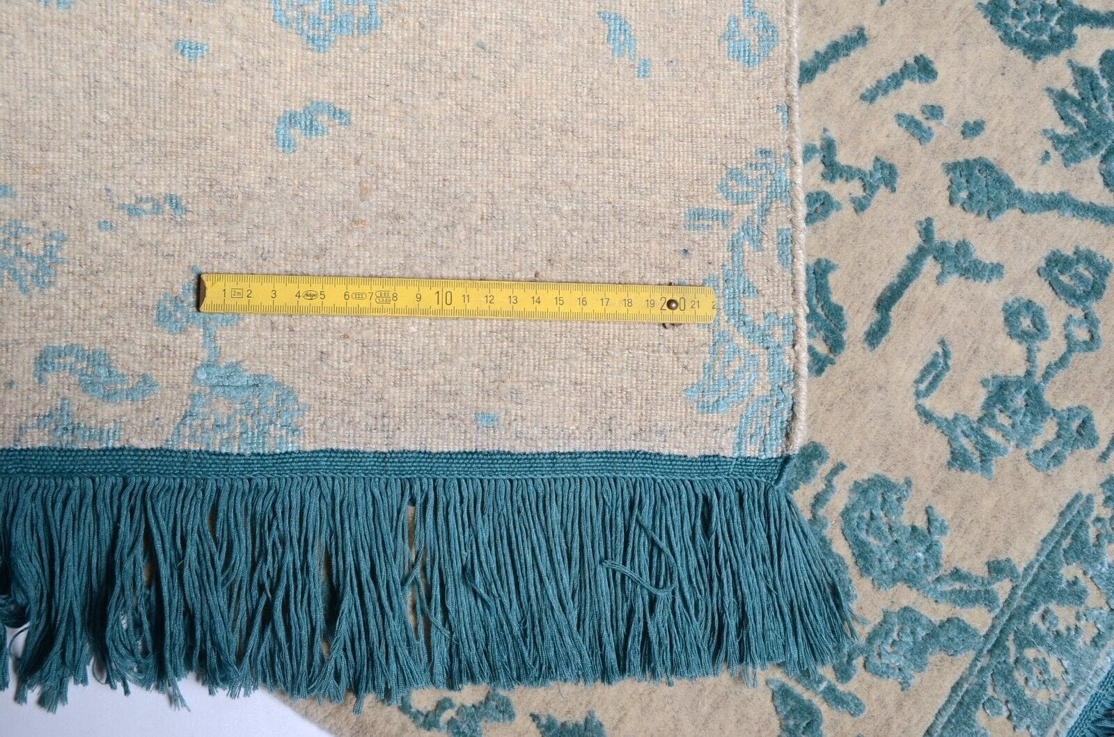 Handgeknüpfter Orientteppich | Größe: 88 x 56 cm | Material: 85% Schurwolle, 15% Viscose | Knotendichte: 180.000 – 200.000 Knoten/m² | Zustand: Neu, perfekt | Herkunft: Indien | Florhöhe: ca. 10 mm | Für Fußbodenheizung geeignet | Stil: Modern, geometrisches Muster