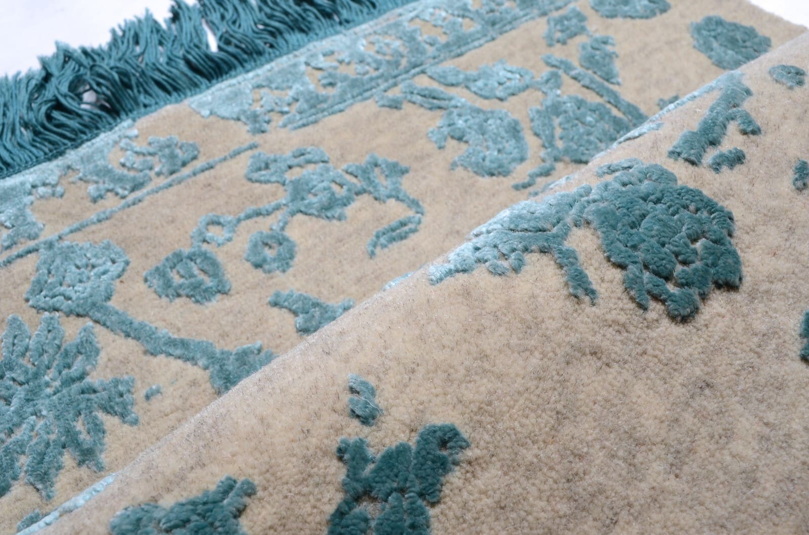 Dieser Orientteppich wird aus hochwertigen natürlichen Materialien hergestellt, die für ihre Langlebigkeit und Widerstandsfähigkeit bekannt sind. Handgeknüpfte Teppiche wie dieser sind traditionell aus Wolle oder Seide gefertigt, was zu einer besonders angenehmen Haptik und einer beeindruckenden Farbbrillanz führt. Die Knotentechnik sorgt dafür, dass jeder Teppich ein Unikat ist – das sorgfältige Knüpfen von Hand ermöglicht es, feine Details und kunstvolle Muster zu kreieren. Die hohe Knotendichte von 200.000 Knoten pro Quadratmeter spricht für die exzellente Verarbeitung und den handwerklichen Aufwand, der in die Herstellung dieses Teppichs geflossen ist.