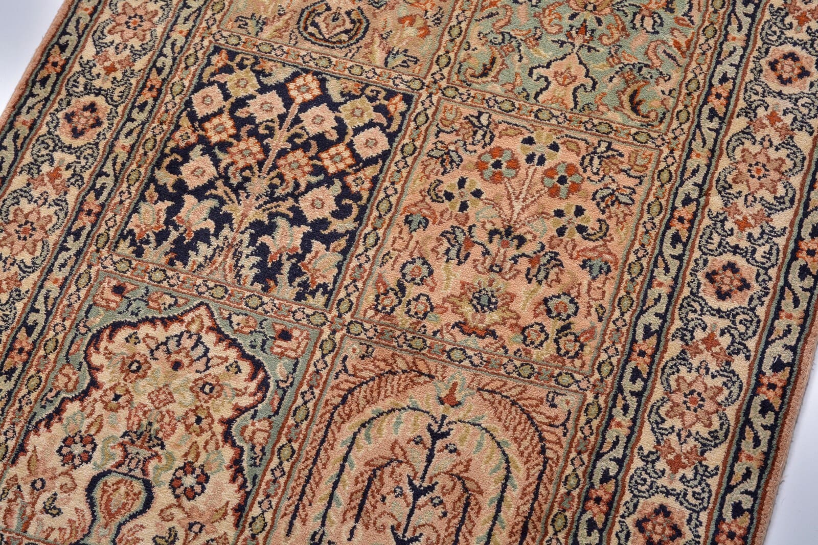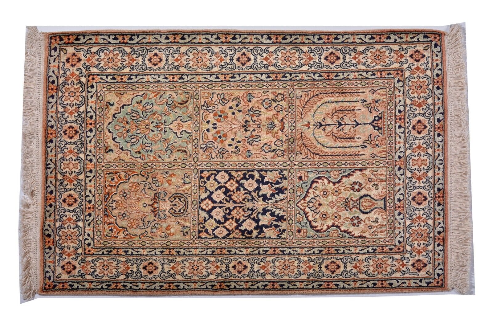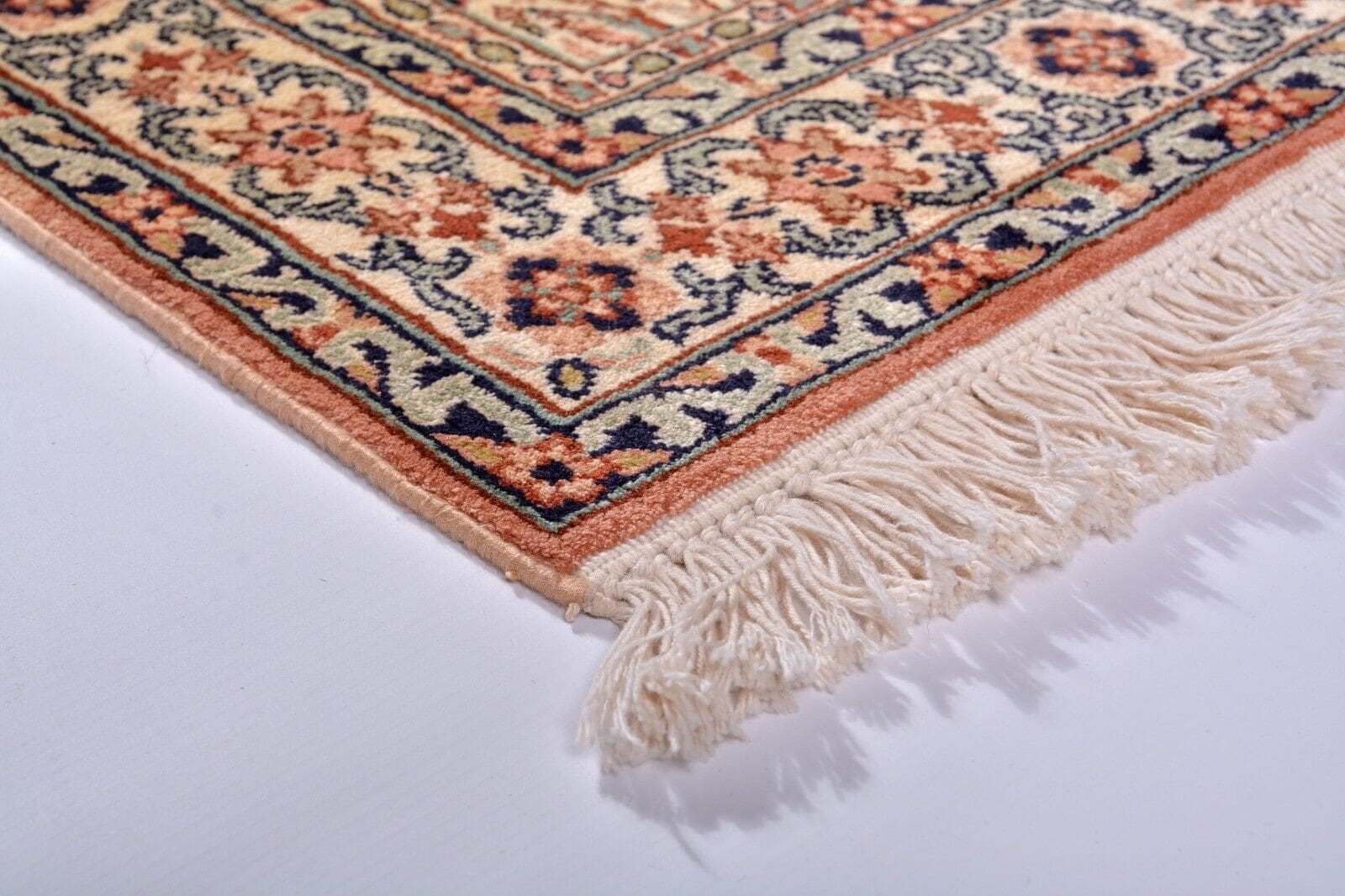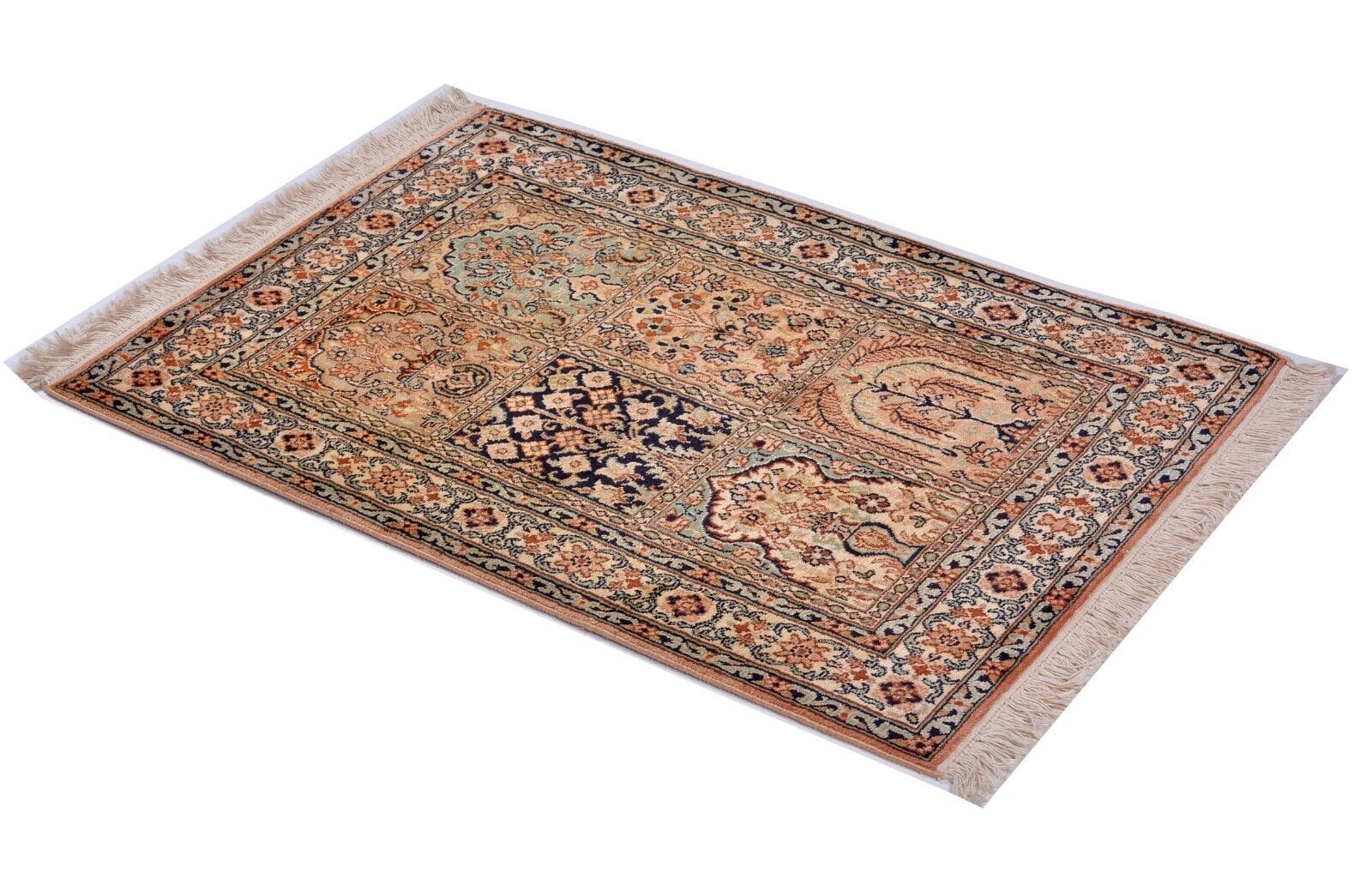 Handgeknüpfter Orientteppich | Größe: 95×65 cm | Knotendichte: 550.000 Knoten/m² | Material: 100% Seide mit 100% Baumwollkette | Zustand: Neu, perfekt | Herkunft: Indien | Muster: Floral | Dicke: ca. 8 mm | Gewicht: ca. 3 kg/m² | Für Fußbodenheizung geeignet | Stil: Traditionell Orientalisch/Persisch