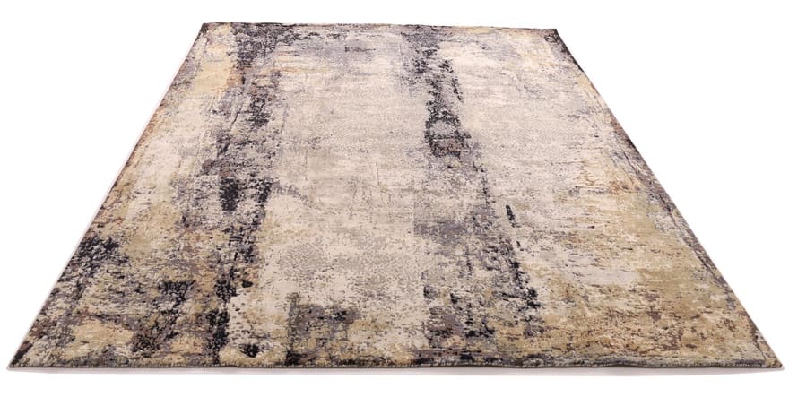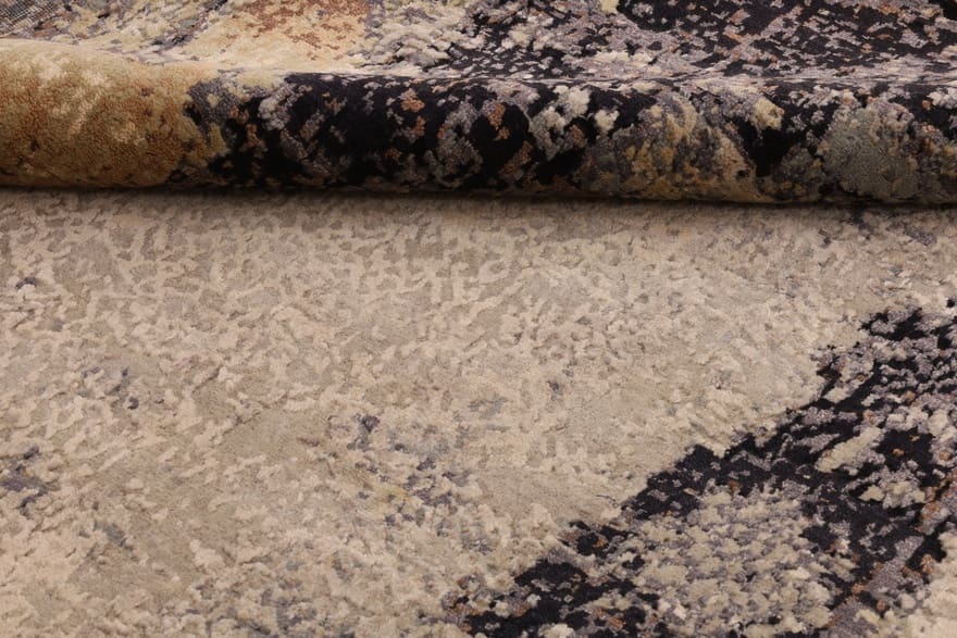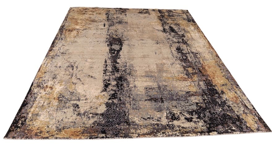 Handgeknüpfter Designer-Teppich „Lotus“ | Knotendichte: 128.000-160.000 Knoten/m² | Material: Wolle mit Bambusseide | Größe: 304×243 cm | Farbe: Schwarz/Grau | Zustand: Neu | Herkunft: Indien | Verarbeitung: Handgeknüpft | Dicke: ca. 10 mm | Gewicht: ca. 26 kg