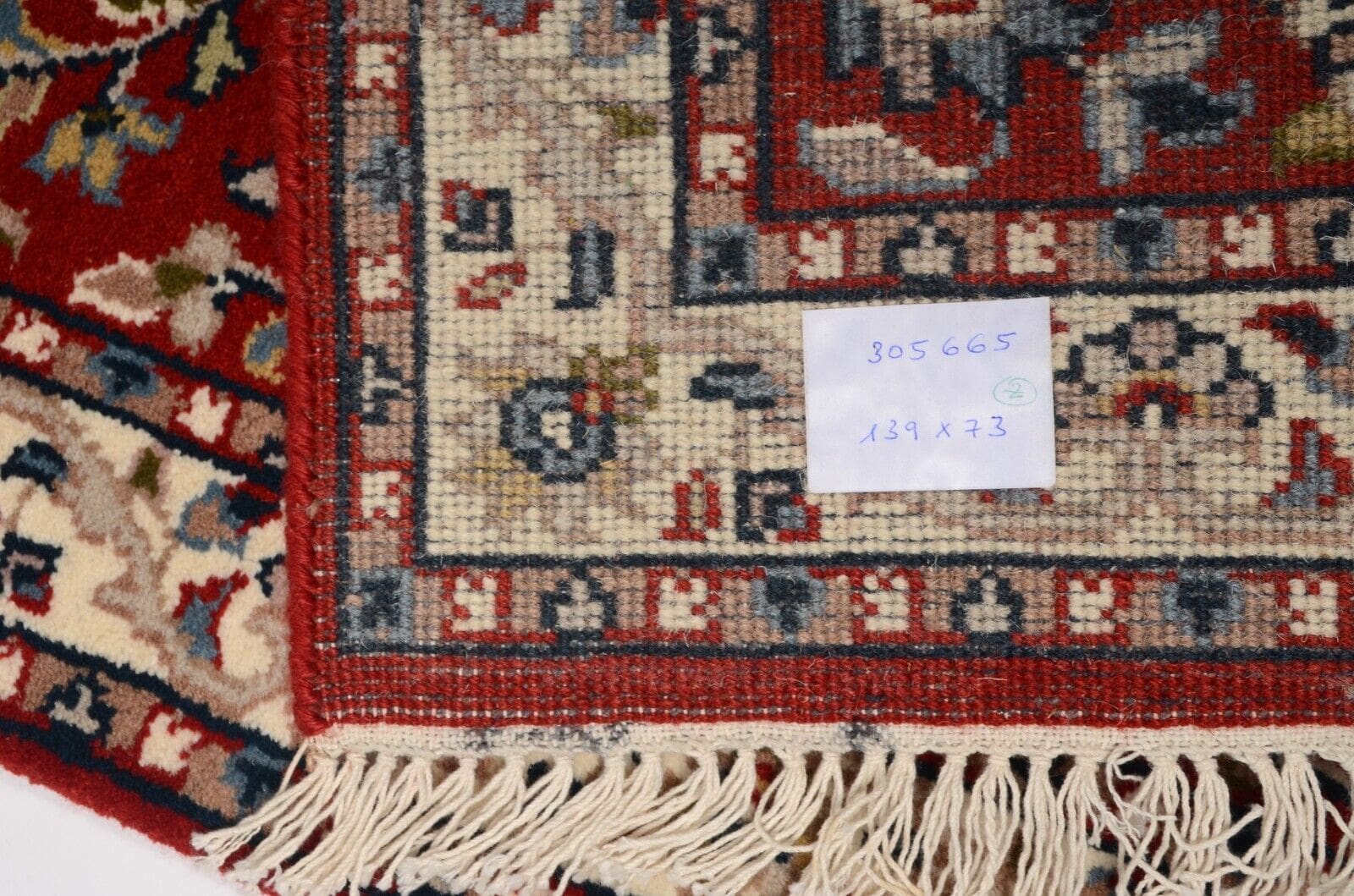Handgeknüpfter Orientteppich Indo Tabriz | Größe: 139 x 73 cm | Material: 100% Schurwolle | Knotendichte: 139.000 Knoten/m² | Dicke: ca. 12 mm | Zustand: Neu, perfekt | Herkunft: Indien | Muster: Floral, orientalisch | Für Fußbodenheizung geeignet | Stil: Traditionell persisch/orientalisch