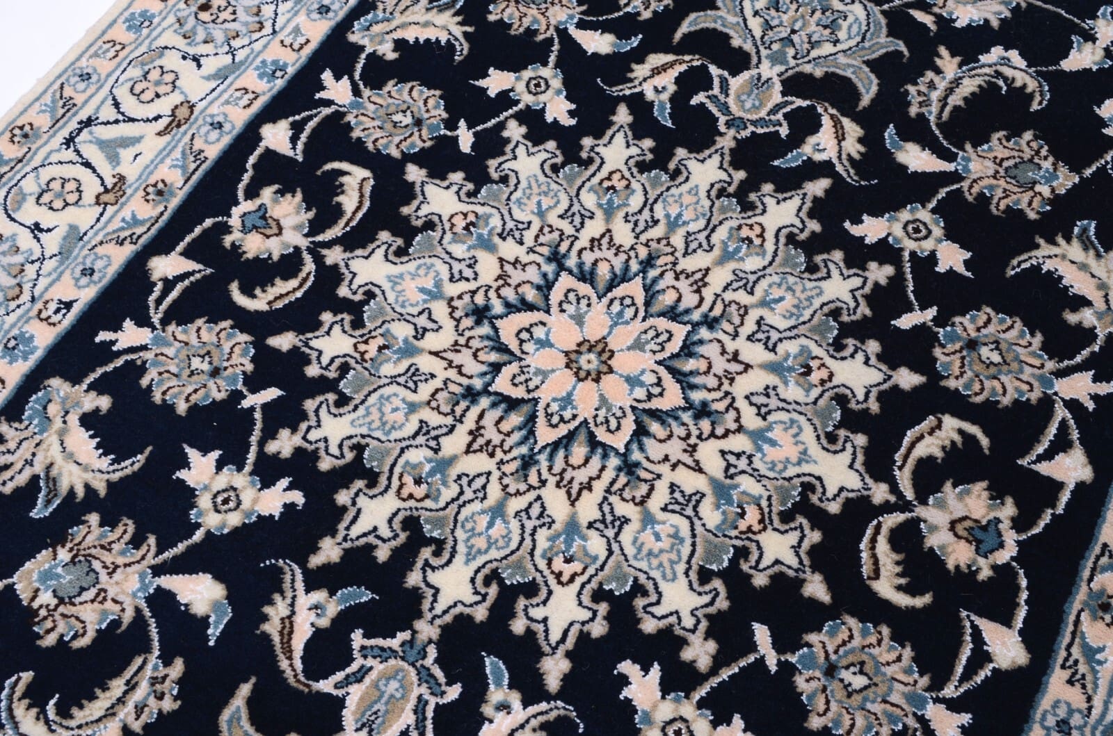 Handgeknüpfter Orientteppich Nain | Knotendichte: 300.000 Knoten/m² | Material: 100% Schurwolle | Größe: 199 x 119 cm | Zustand: Neu | Herkunft: Persien | Muster: Floralmotiv mit Medaillon | Dicke: ca. 12 mm | Für Fußbodenheizung geeignet | Hohe Farbbeständigkeit