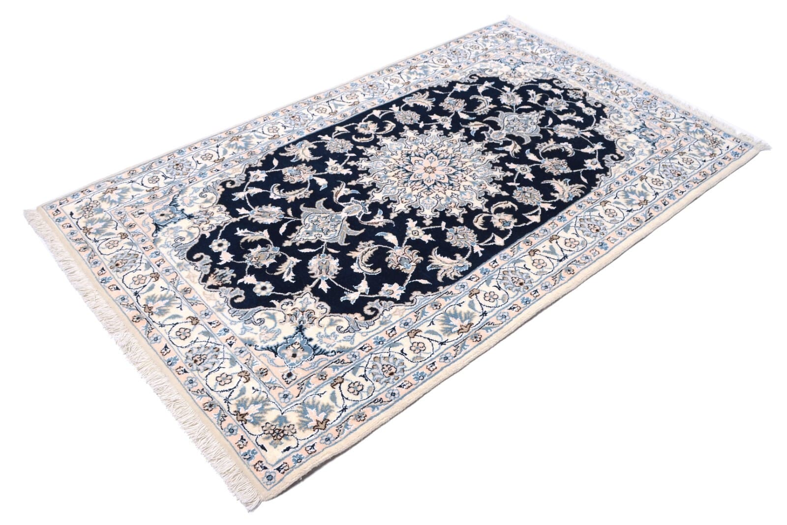 Handgeknüpfter Perser Nain Teppich 199 x 119 cm, 300.000 Knoten, Blau