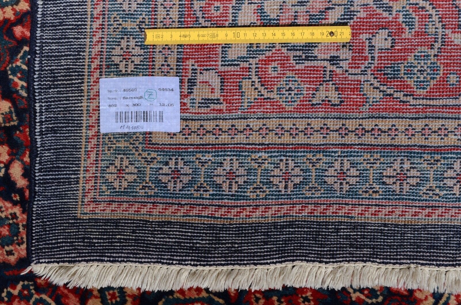 Handgeknüpfter Orientteppich Sarough | Größe: 402 x 300 cm | Knotendichte: 280.000 Knoten/m² | Material: 100% Wolle mit Baumwollkette | Dicke: ca. 10 mm | Zustand: Neu, perfekt | Muster: Orientalisch, Allover Design | Herkunft: Persien | Für Fußbodenheizung geeignet | Gewicht: 4 kg/m² | Stil: Traditionell Orientalisch/Persisch