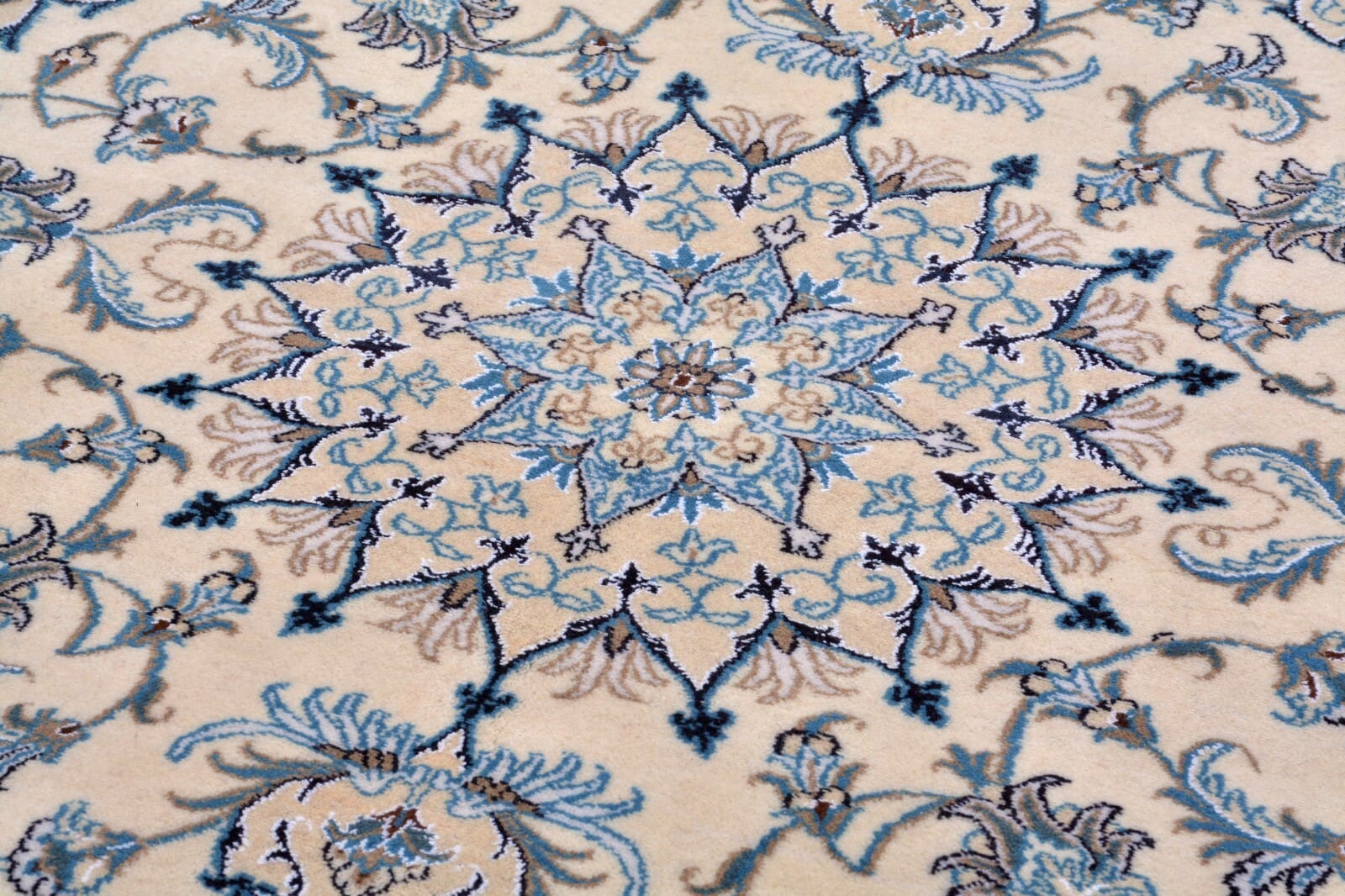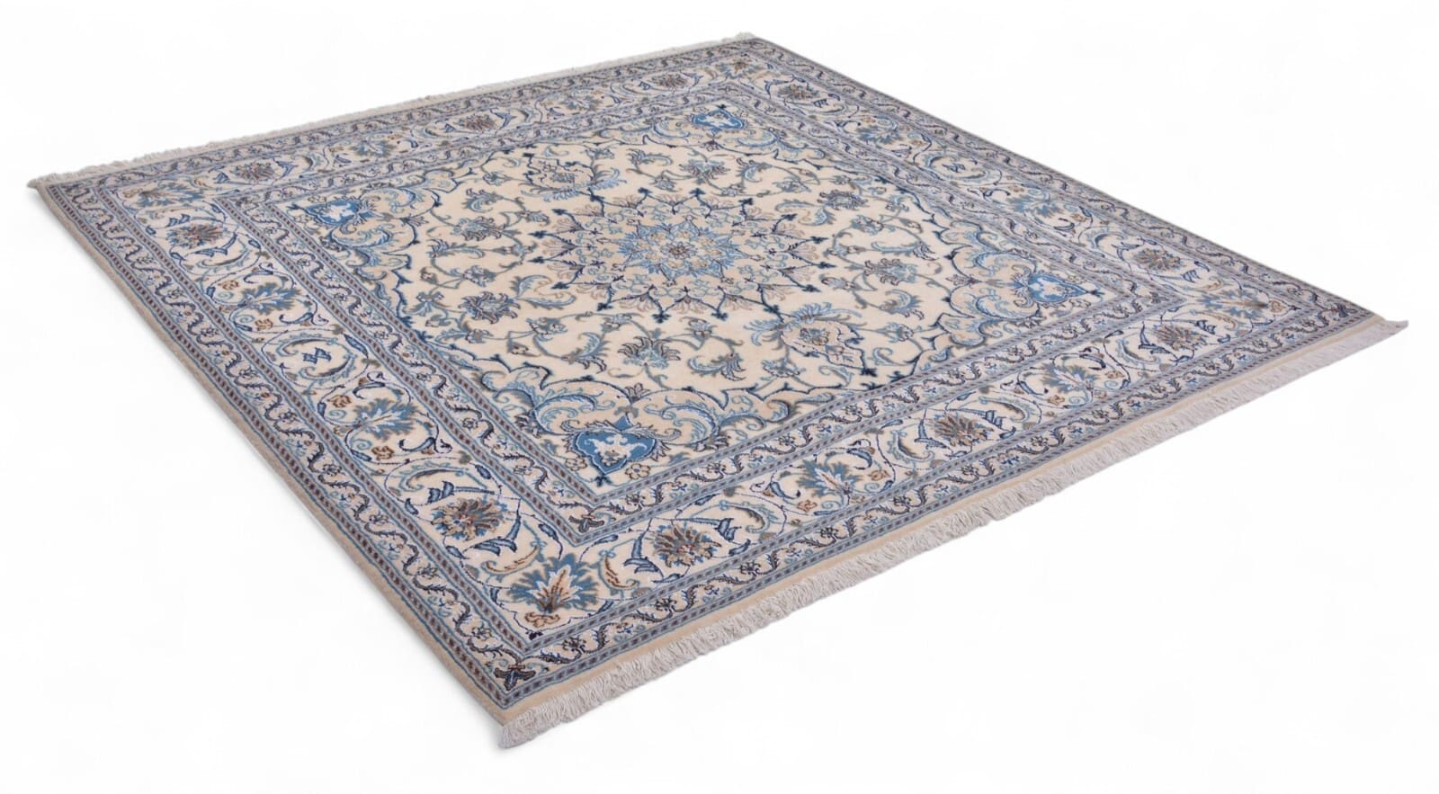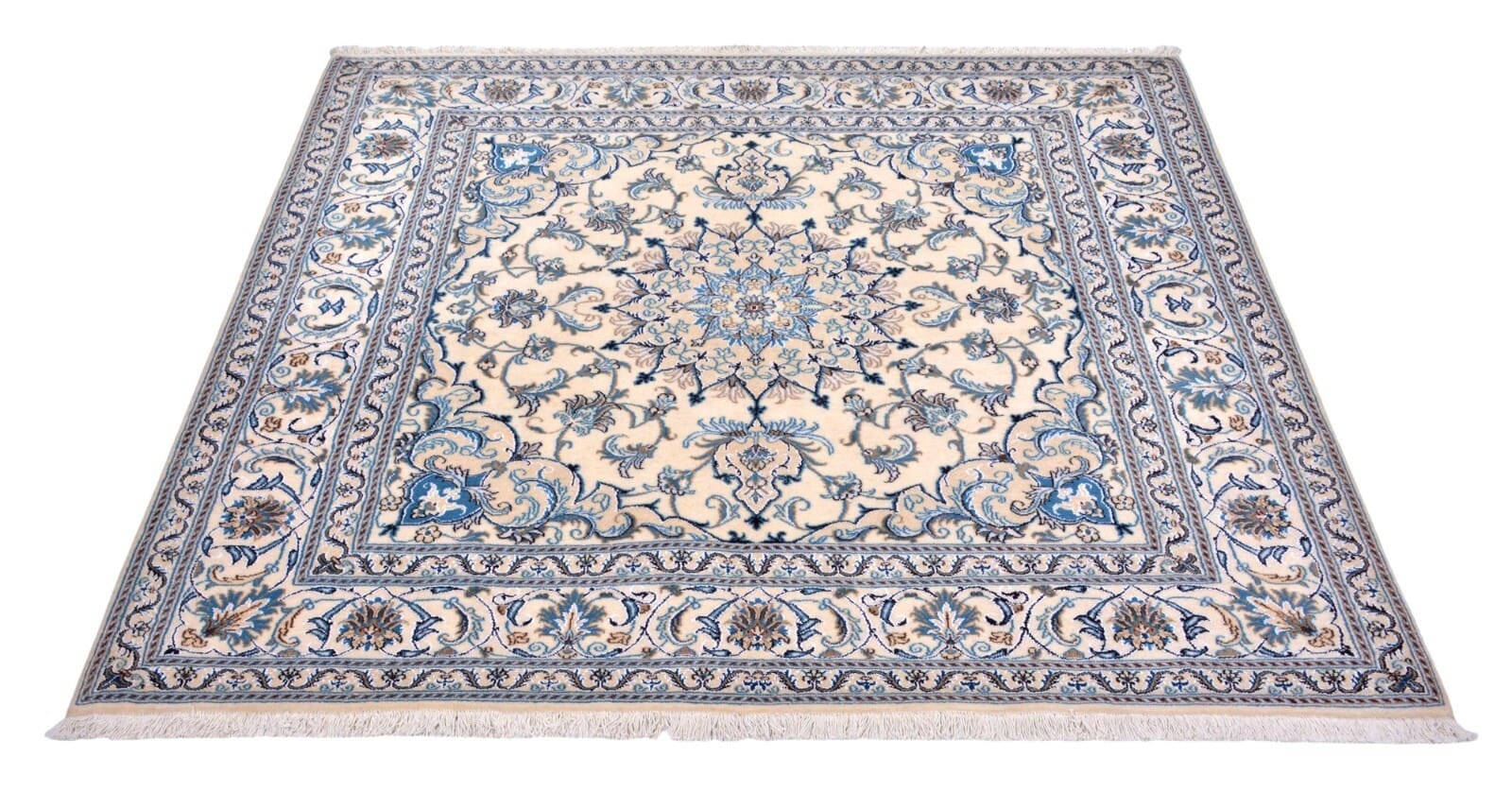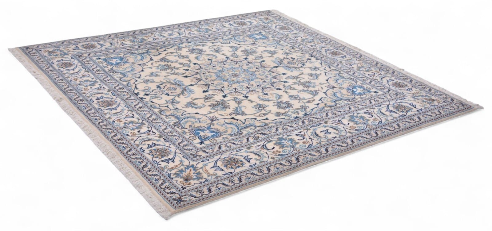 Handgeknüpfter Orientteppich Nain | Knotendichte: 300.000 Knoten/m² | Material: 100% Schurwolle | Größe: 197 x 196 cm | Zustand: Neu | Herkunft: Persien | Muster: Floralmotiv mit Medaillon | Geeignet für Fußbodenheizung | Hohe Farbbeständigkeit | Dicke: ca. 12 mm | Gewicht: ca. 3,5 kg/m² | Stil: Traditionell Orientalisch/Persisch